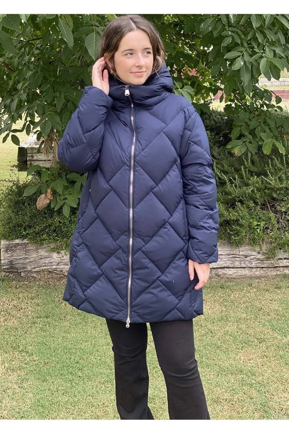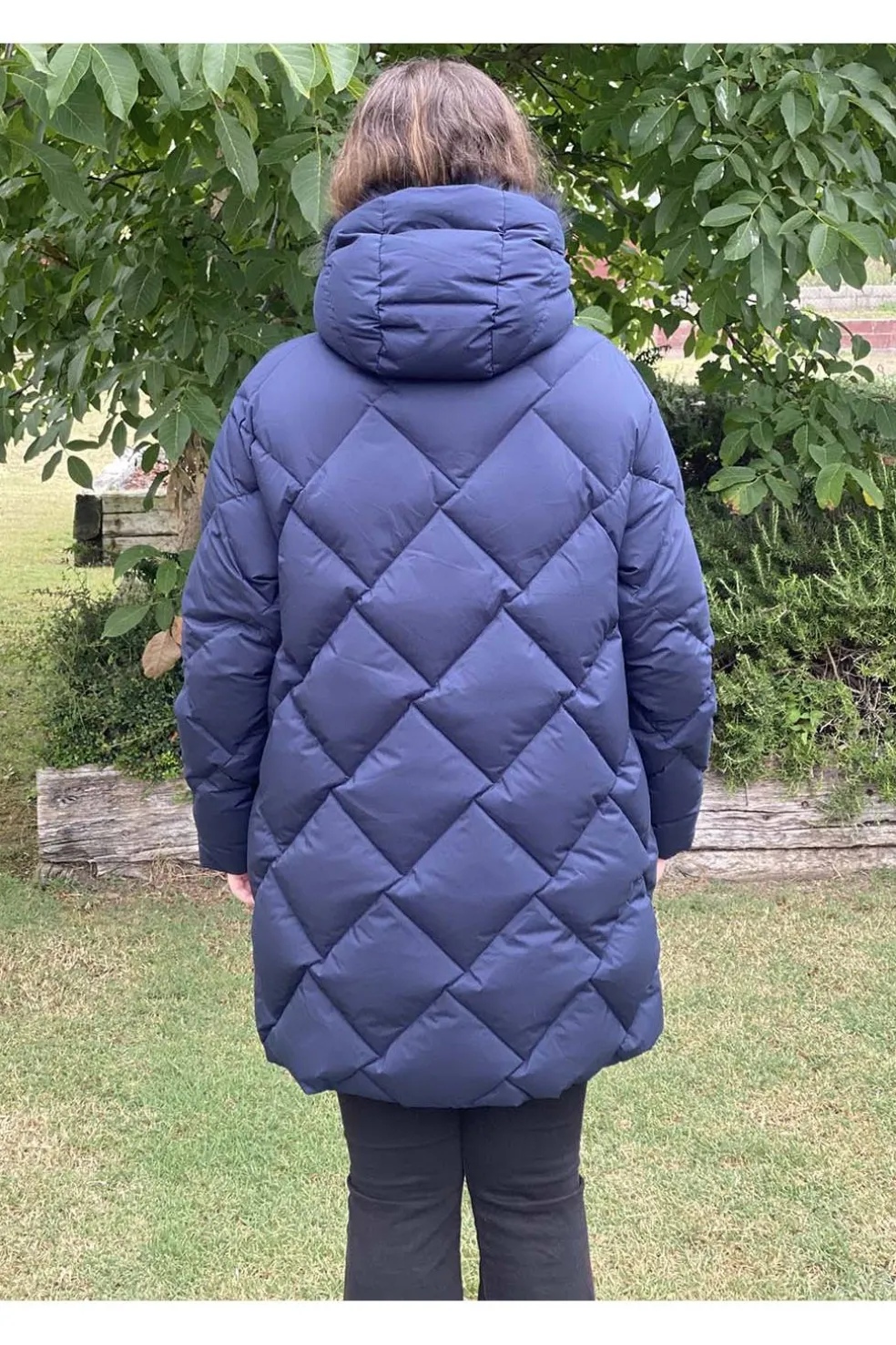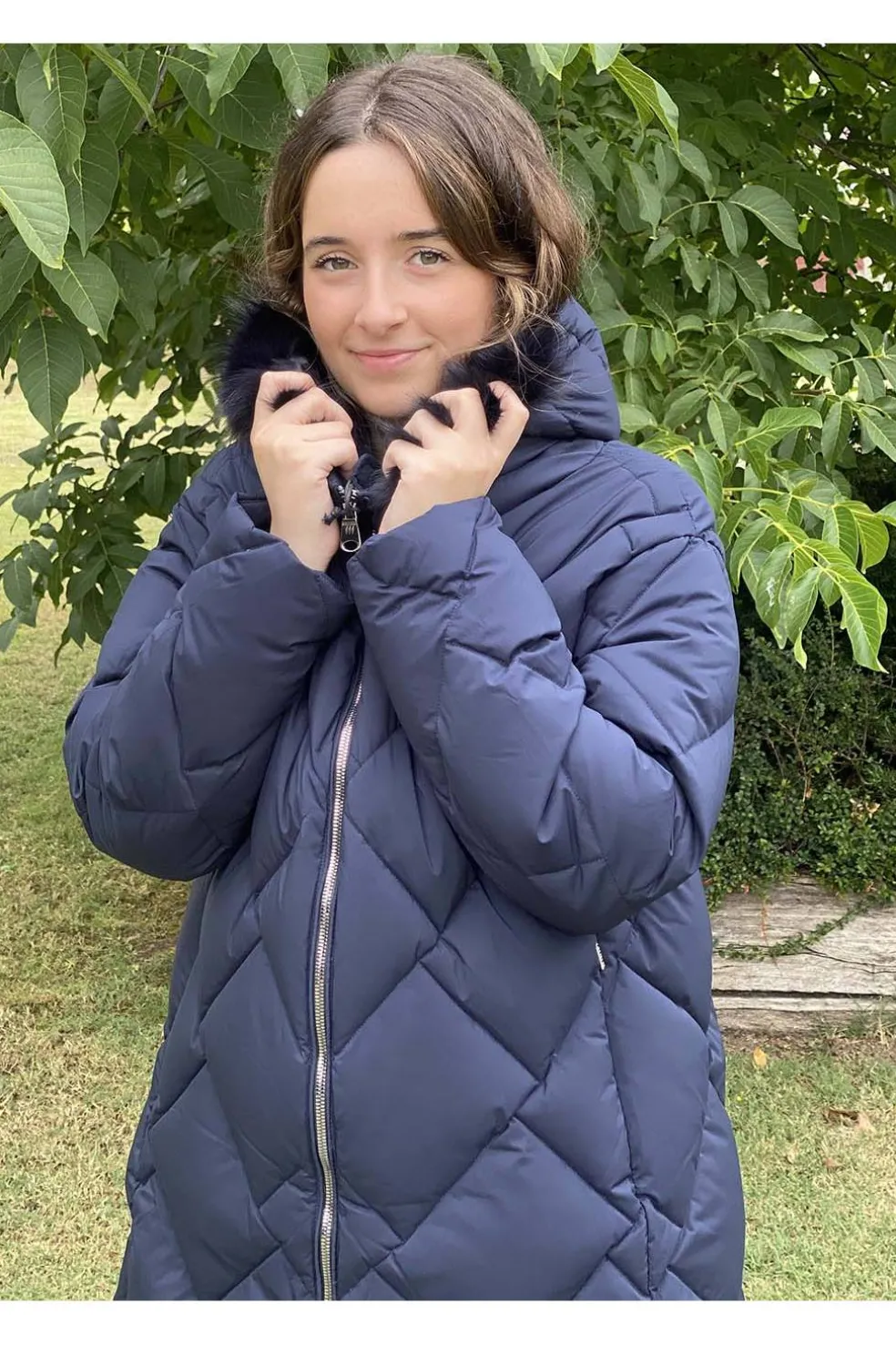 Este chaquetón es de pluma natural con una calidad sensacional , el cosido en diagonal lo hace diferente . Destaca su cuello importante y una tira de pelo natural que se desmonta .
