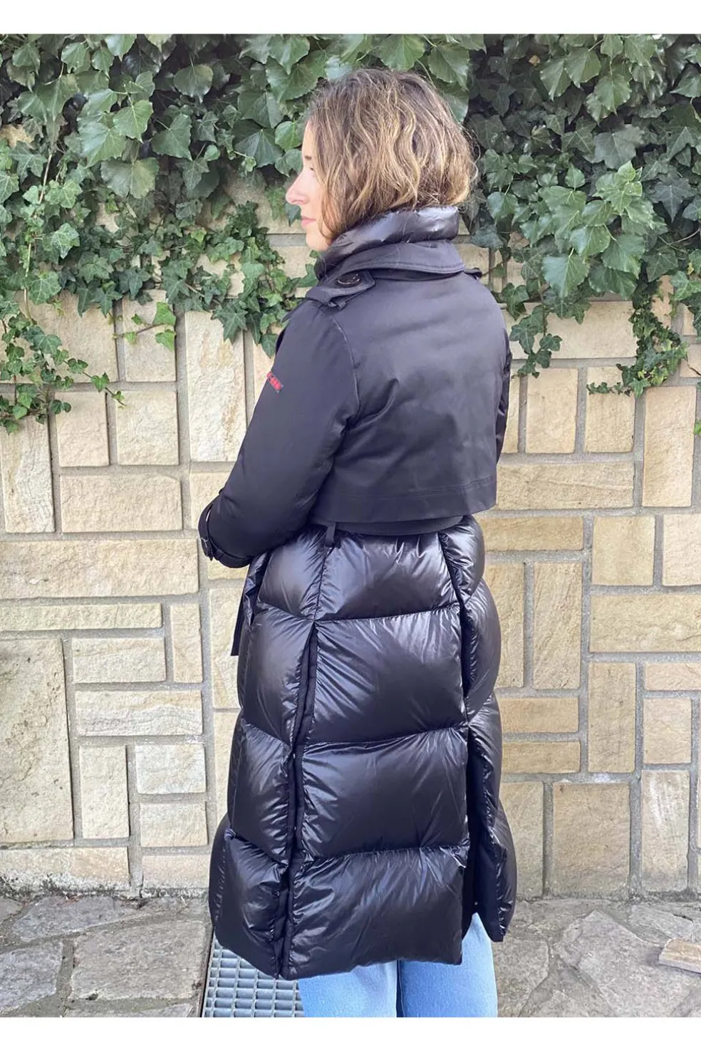 El plumífero modelo CATHERINA tiene un original diseño con detalle estilo trench superpuesto sobre el plumífero. Con largo hasta la rodilla, cierre central con cremallera con solapa, y cuello alto.