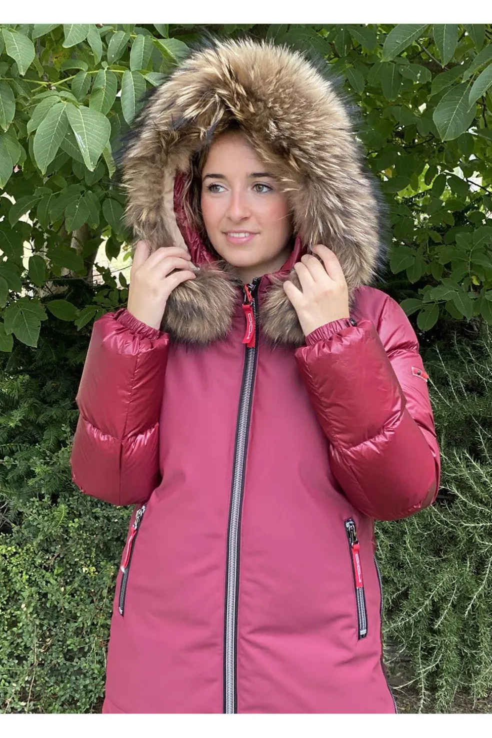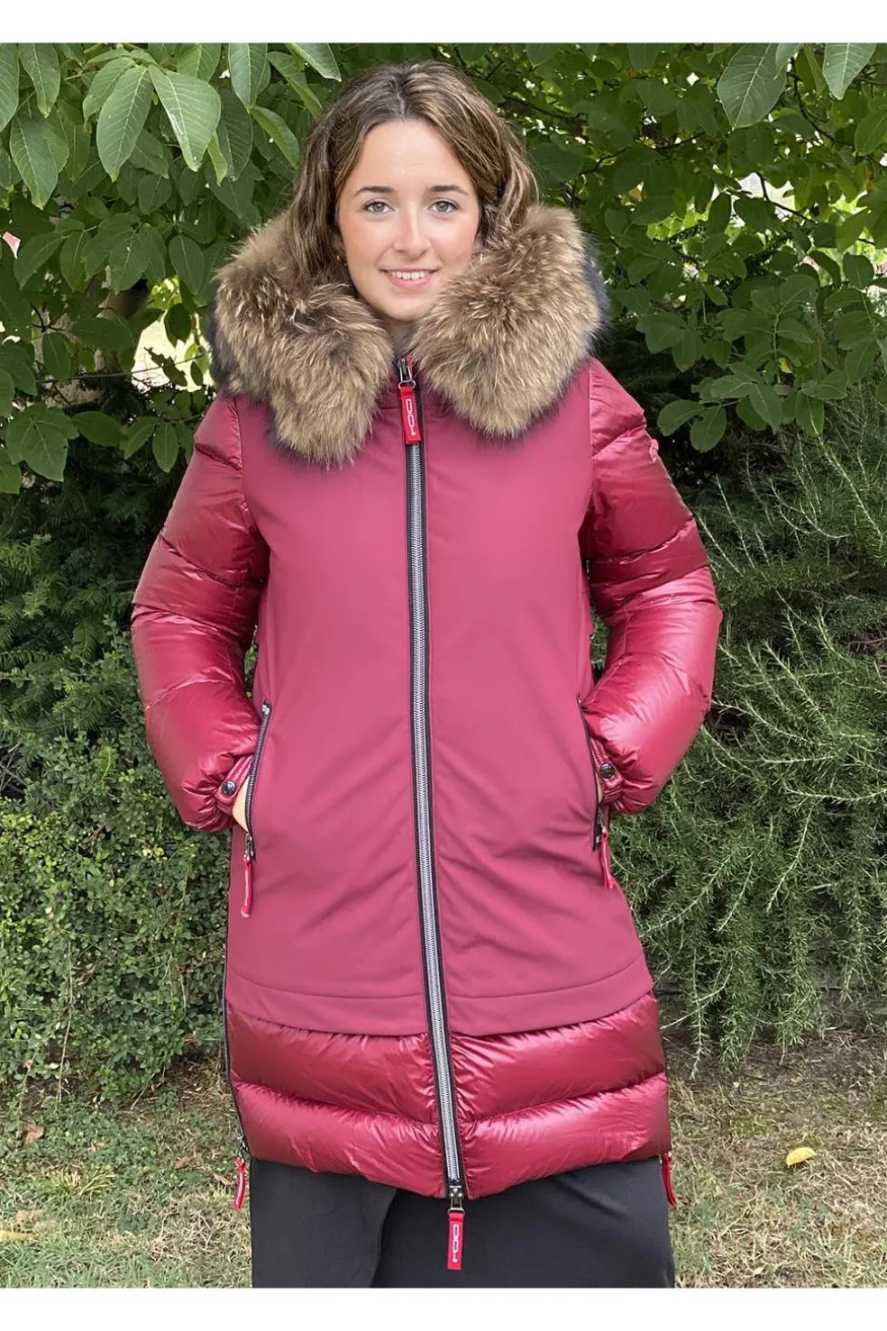 El abrigo Galena 10 de Dichi en color rosa destaca por su diseño moderno y femenino. Con relleno de pluma natural y capucha con pelo natural, garantiza abrigo ligero y confort en los días más fríos. Su efecto metalizado en diferentes zonas le aporta un estilo único y sofisticado, mientras que el logo de la marca en el brazo refuerza su carácter exclusivo. Una prenda elegante y funcional para el invierno.