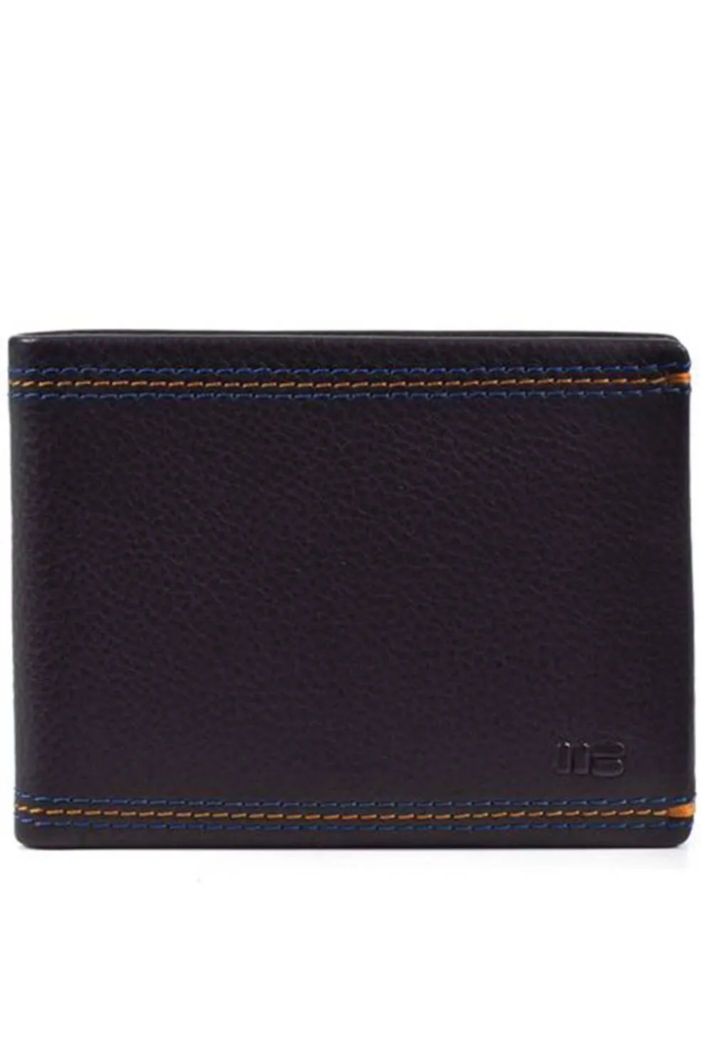 Billetero de piel de vacuno. Este modelo contiene bolsillo para billetes y siete ranuras para tarjetas. Pespuntes en ligero contraste en el exterior. Sello con la identificación de marca grabado a fuego. Está protegida con sistema de bloqueo RFID para evitar el escaneo, lectura y pagos no autorizados.