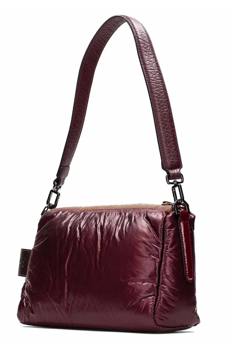 - Bolso de hombro confeccionado en nylon con cierre de cremallera.