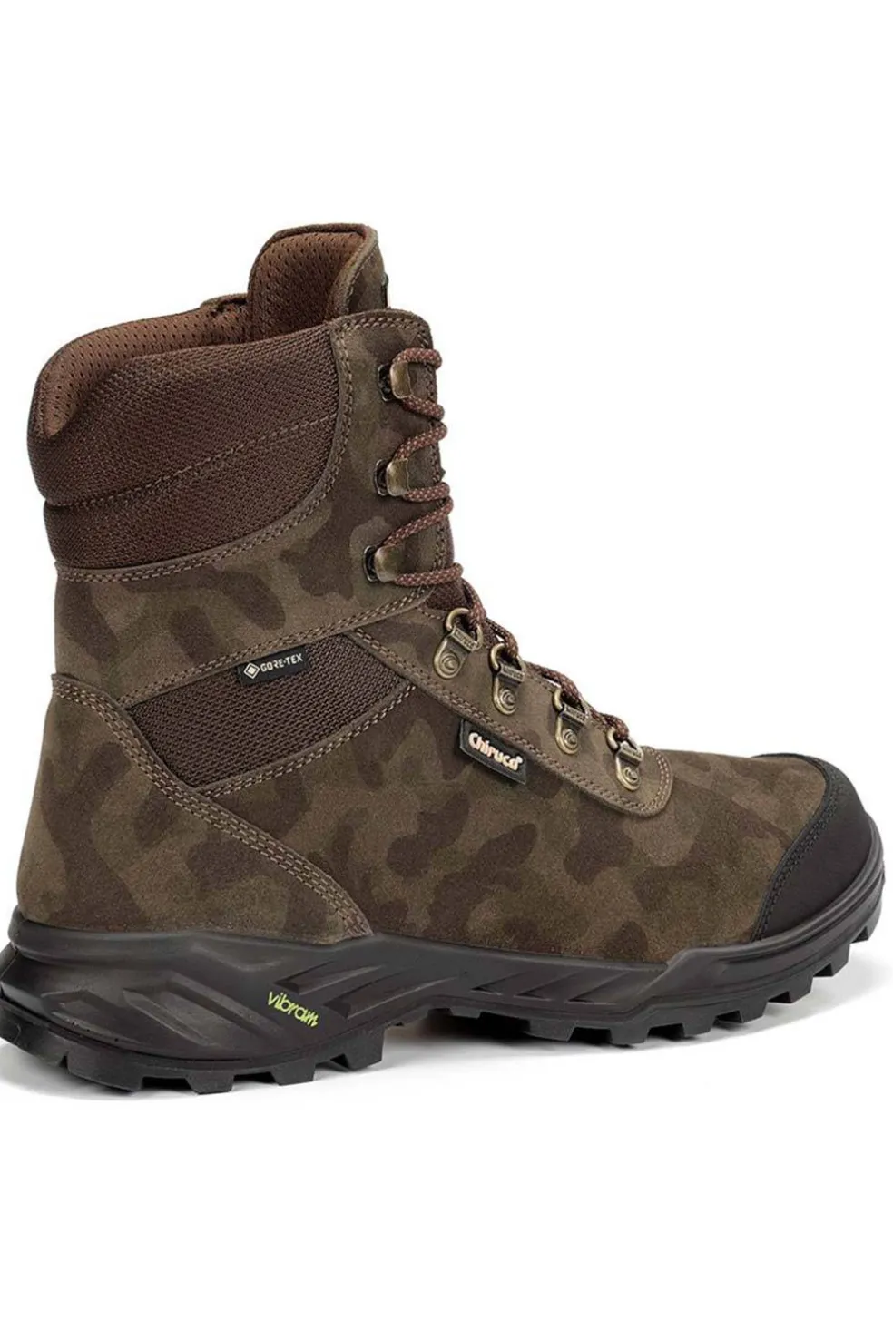 Modelo polivalente aconsejado para cualquier tipo de caza. Adecuada para todo tipo de terrenos. Bota de piel serraje estampado camuflaje, refuerzo en puntera, membrana Gore-Tex impermeable y transpirable; con entresuela de poliuretano y patín de caucho Vibram® que proporciona amortiguación y adherencia. Peso: 602 gramos.