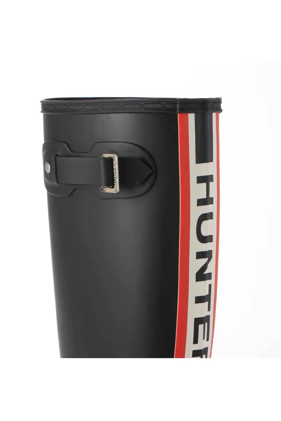 Las botas altas originales de Hunter hechas de caucho natural con certificación FSC se actualizan con un logotipo tricolor en la correa trasera.