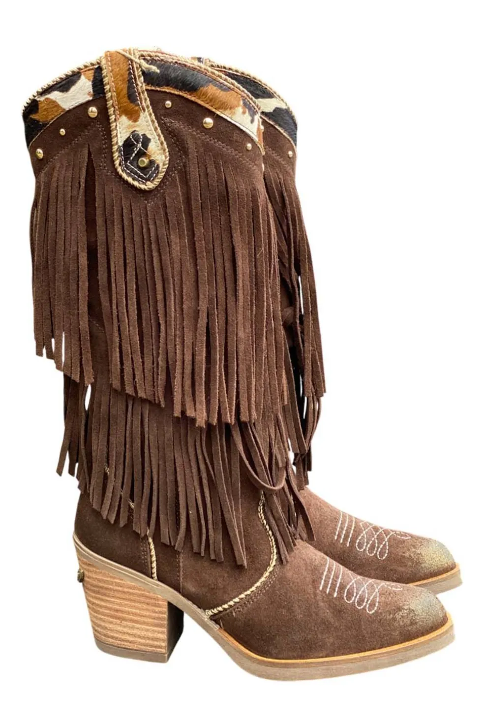 En la parte superior de la caña, estampado de pelo vacuno tricolor.