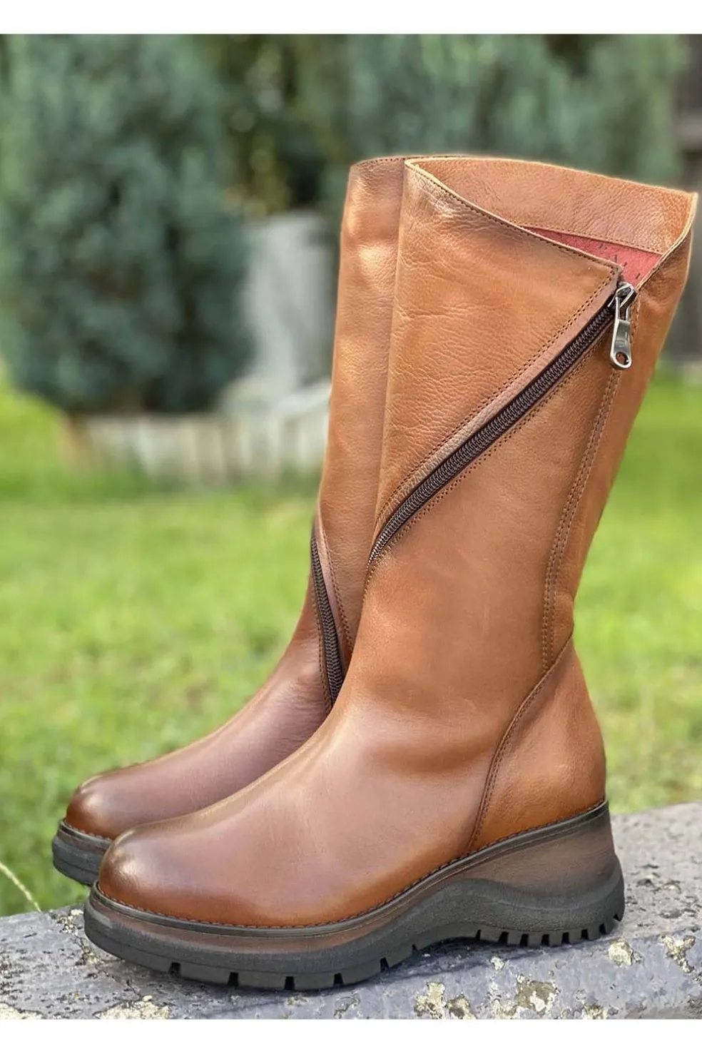 Bota de mujer en piel en color cuero.