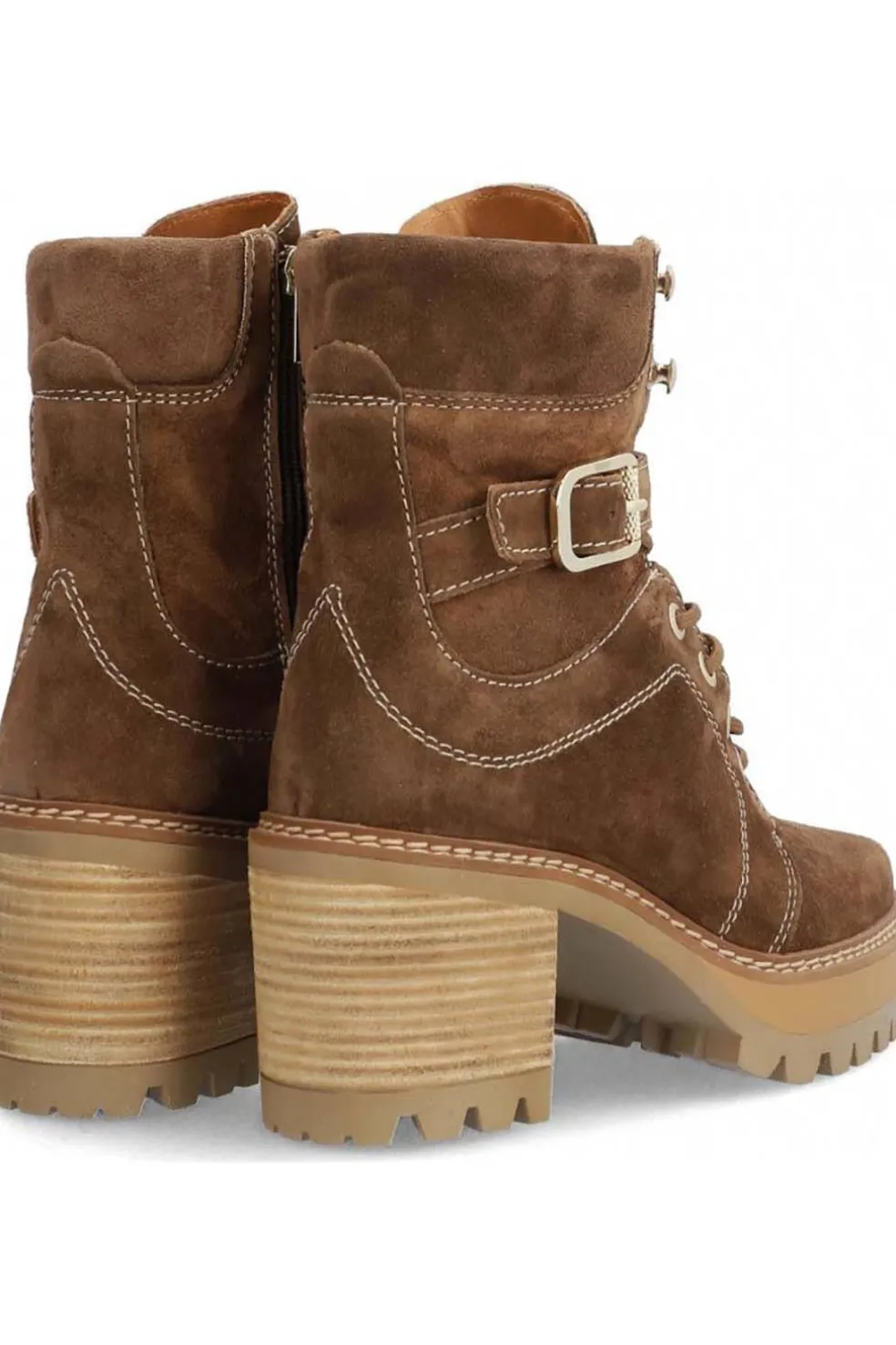 Botin para mujer ALPE NEW AMELIE, fabricado en piel (baby silk) de color sandalo con tacón de 7 cm, suela antideslizante y puntera redonda, con cierre mediante cremallera y caña baja.