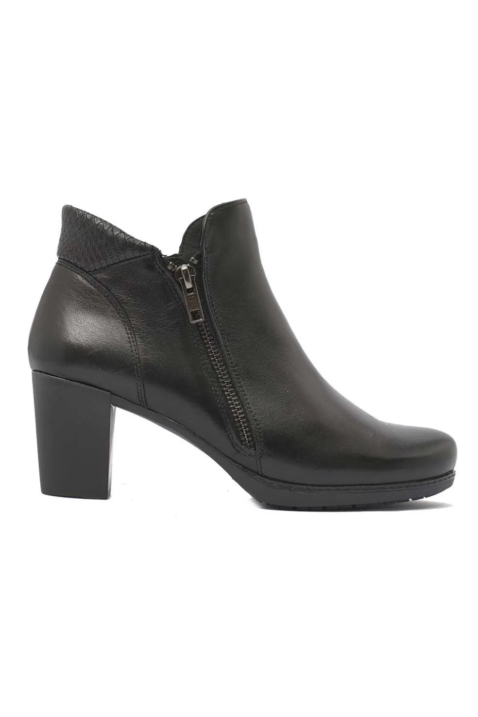 Botín Baerchi de tacón medio de señora, en piel vacuno, con cremallera lateral y suela de caucho.