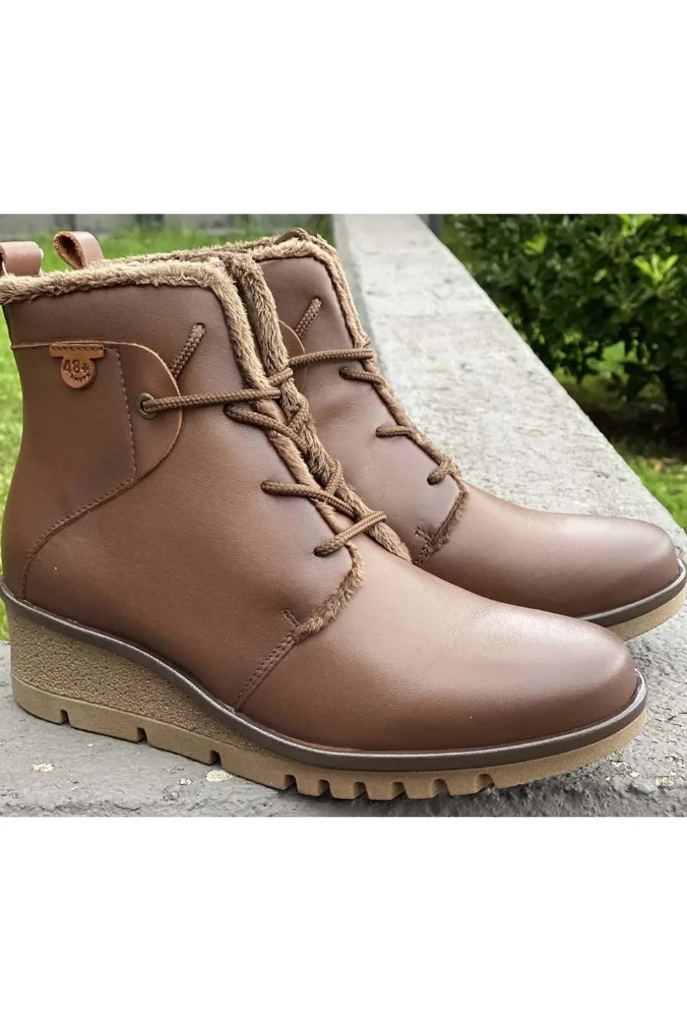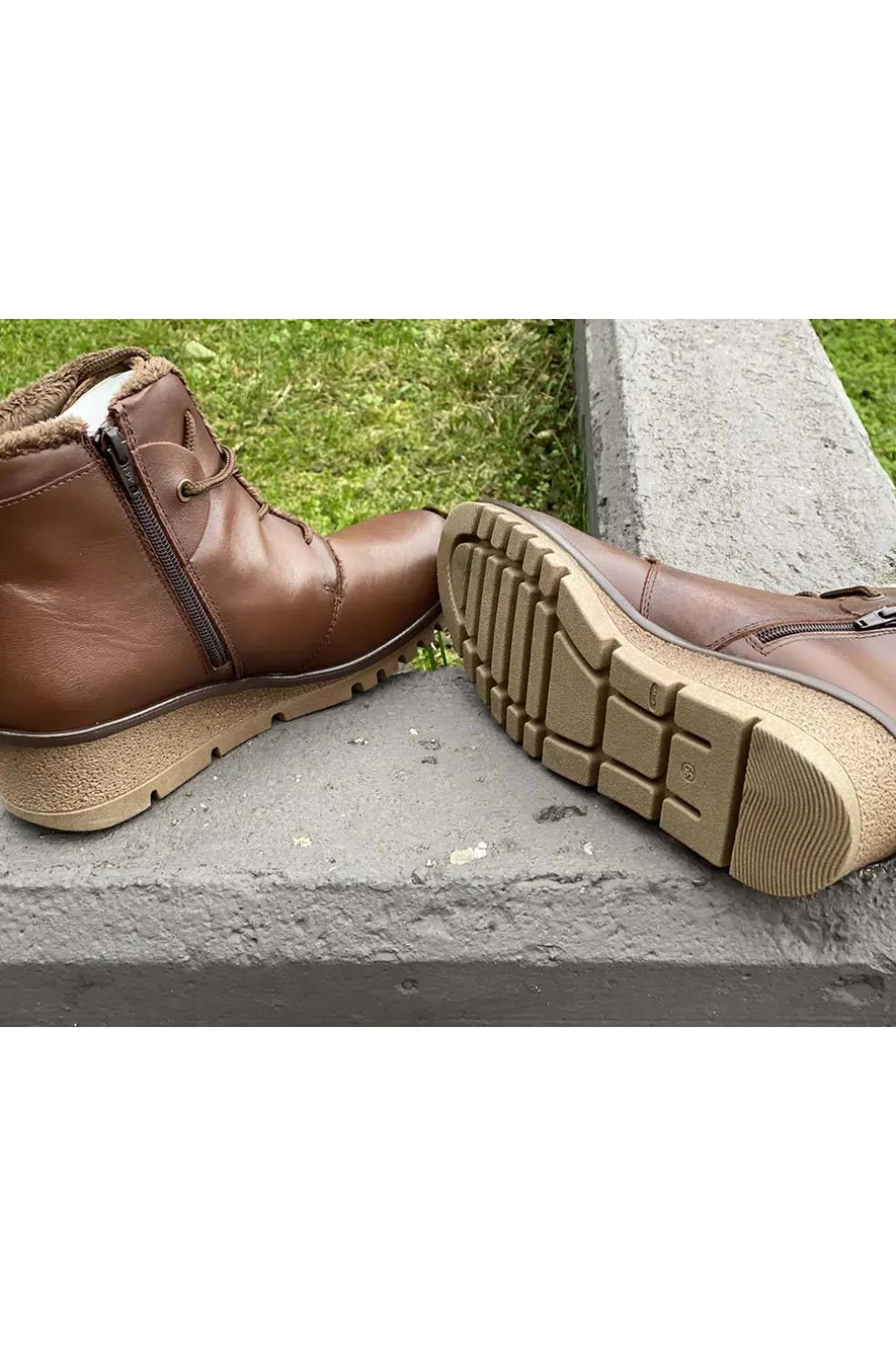 Presentamos nuestros elegantes botines de mujer, elaborados en suave piel en un sofisticado color hielo. Con un práctico cierre de cordones y cremallera, estos botines ofrecen un ajuste perfecto y fácil de poner. El forro de pelo sintético corto proporciona calidez y confort, mientras que la plantilla extraíble permite personalizar tu comodidad.