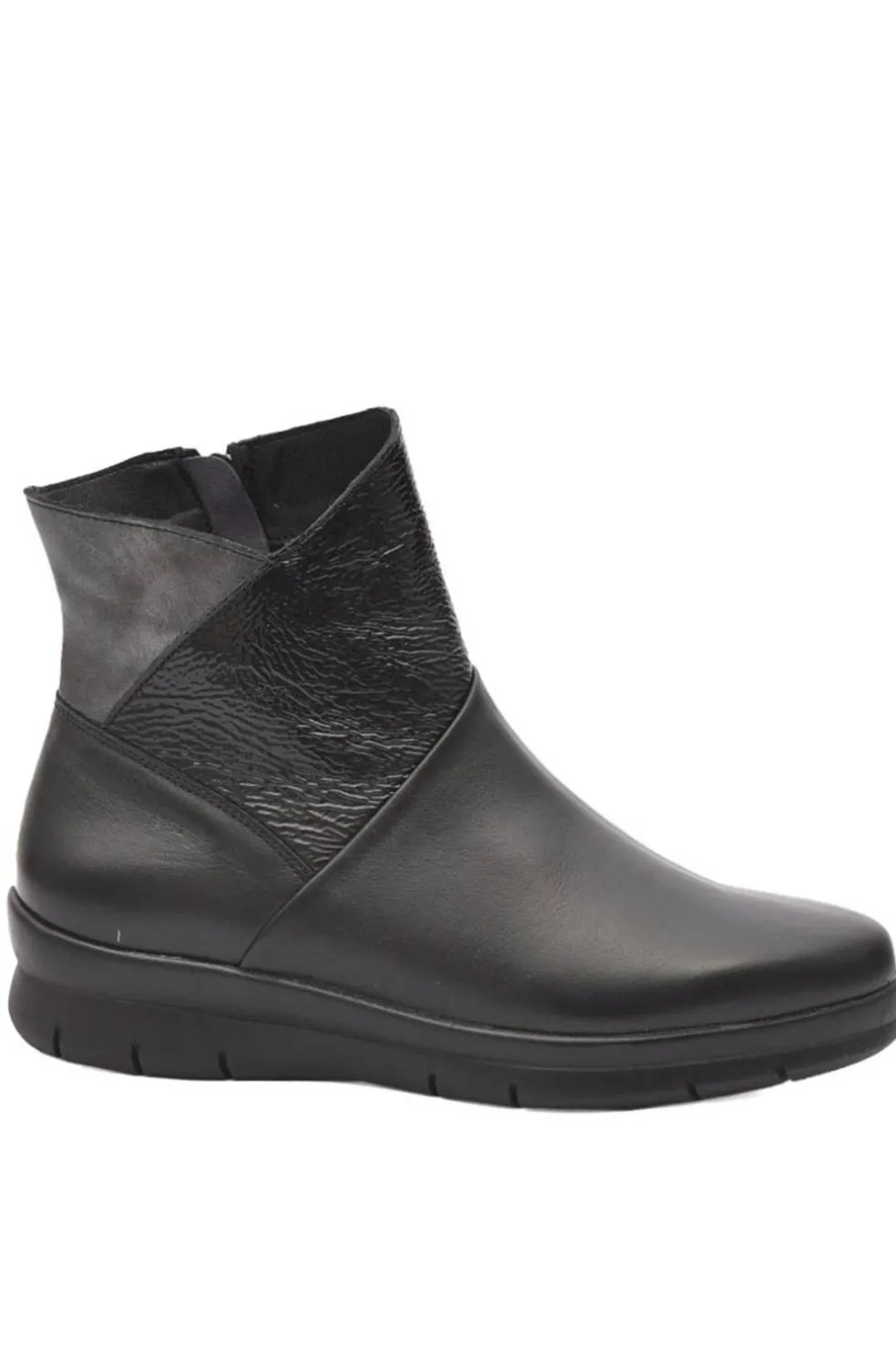 Botín casual y confortable para mujer. Esta colección se caracteriza por su gran comodidad, su interior está forrado de textil y una plantilla anatómica de microfibra de última generación, transpirable y absorbente. Este botín cómodo es ideal para un uso diario y prolongado. Para su cuidado recomendamos utilizar cremas incoloras y limpiar con un trapo húmedo.