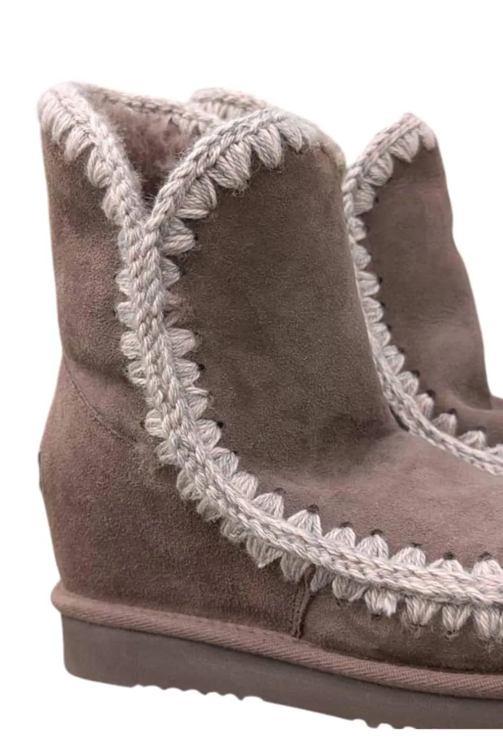 Una pieza esencial en el vestuario invernal de mou, las eskimo short de cuña representan lo mejor del icono mou con un tacón oculto de 5 cm y una forma más estilizada. Increíblemente cómodo y favorecedor, este modelo está elaborado con suave y genuina piel de oveja, con las características costuras de lana de la marca mou cosidas a mano, un soporte de apoyo para el talón y una resistente suela de EVA. Se ofrece en una amplia gama de acabado de cuero especiales y clásicos. Altura 23 cm. Regular fit.