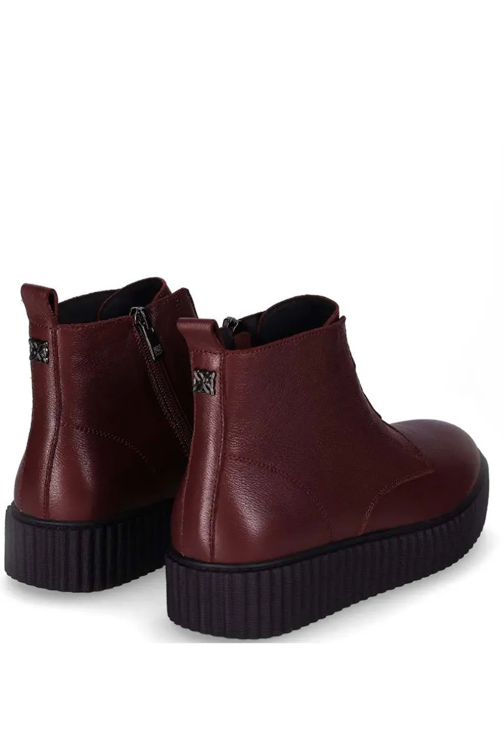 Botín de piel con suela texturizada: Este botín de piel de caña baja presenta un diseño minimalista con una suela gruesa y texturizada para mayor tracción. Su cierre de cremallera facilita el calce, y su acabado liso aporta un toque elegante y moderno.
