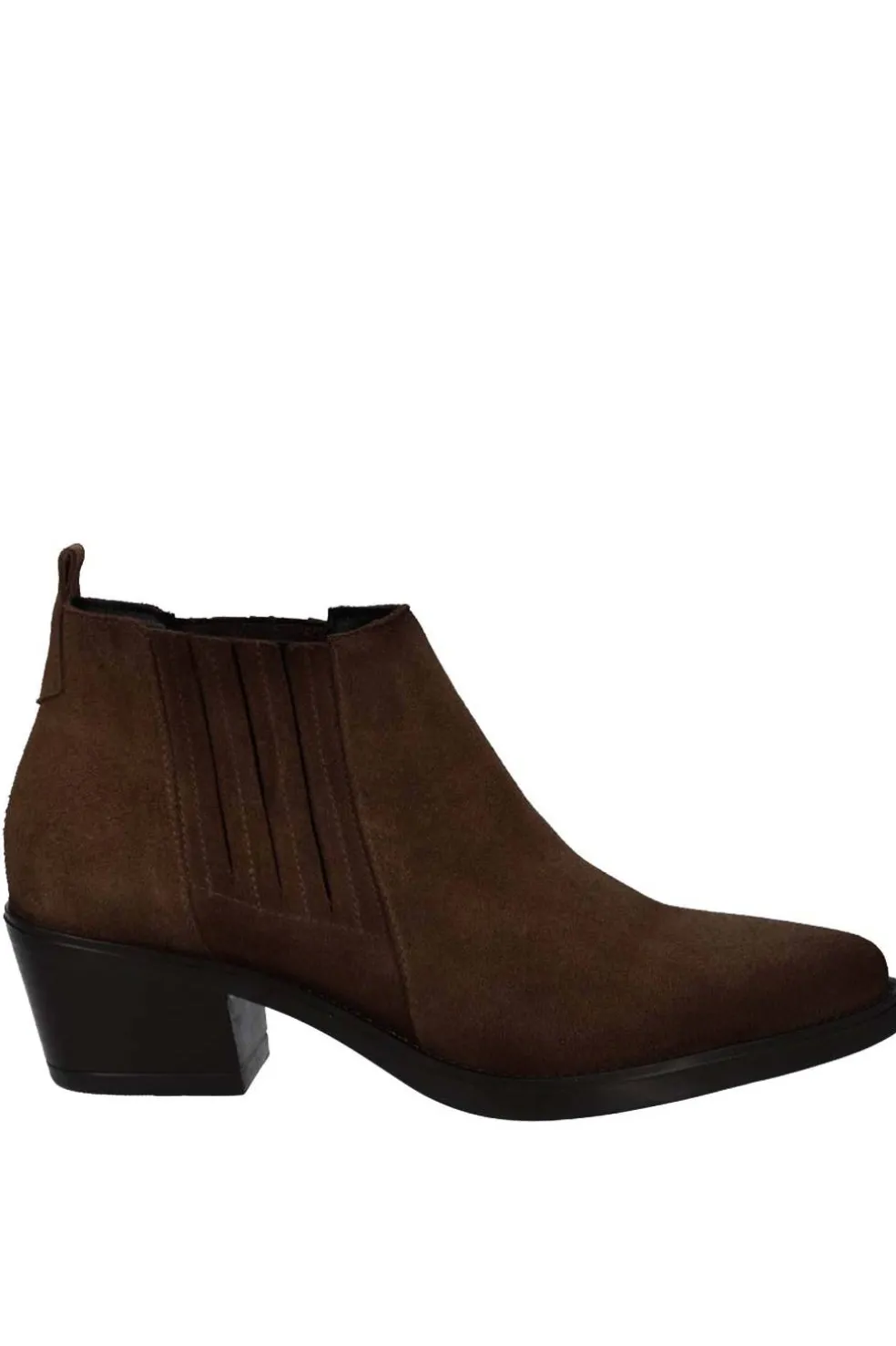 Botín de serraje Viguera en color marrón, confeccionado en piel vuelta de tacto suave que aporta un estilo cálido y versátil. Incorpora gomas elásticas en los laterales que facilitan el calce y garantizan un ajuste cómodo. Su tacón cuadrado de 5,5 cm ofrece altura con estabilidad, mientras que la caña de 15 cm proporciona una sujeción ligera y estiliza la silueta. Un modelo de inspiración atemporal, ideal para completar looks casuales y urbanos de temporada.
