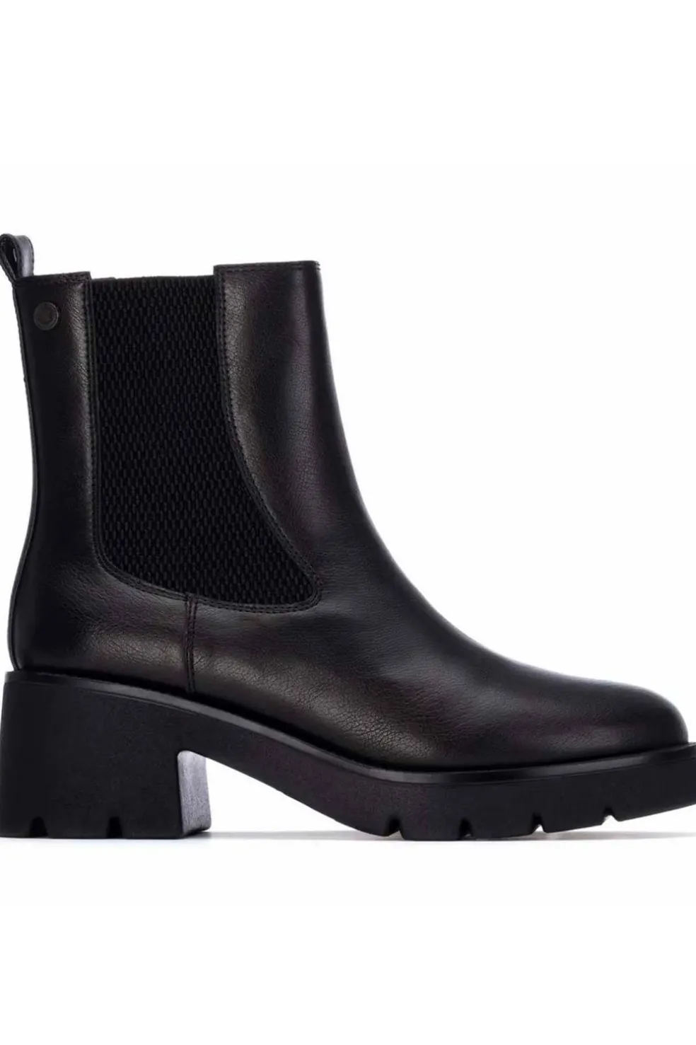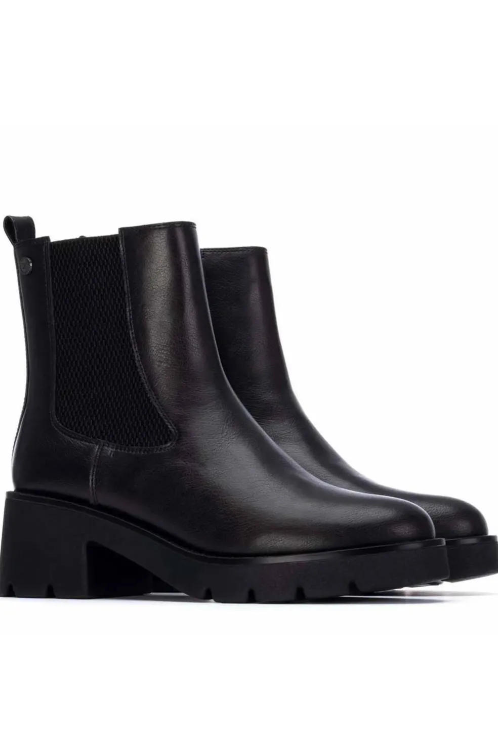 Botín de mujer, de la marca Xti. Fabricado en material que imita la piel, con un elegante modelo Chelsea que se caracteriza por su comodidad y estilo atemporal. Cuenta con un bonito elástico lateral que facilita el calce y aporta flexibilidad al diseño. El tacón de goma de 5 cm asegura confort durante todo el día, mientras que la decoración de brillantes en el piso le añade un toque sofisticado y moderno. Ideal para quienes buscan un botín versátil, elegante y con detalles únicos, este modelo es perfecto para cualquier ocasión. Además, su suela antideslizante garantiza estabilidad y seguridad en cada paso. Plantilla extraíble