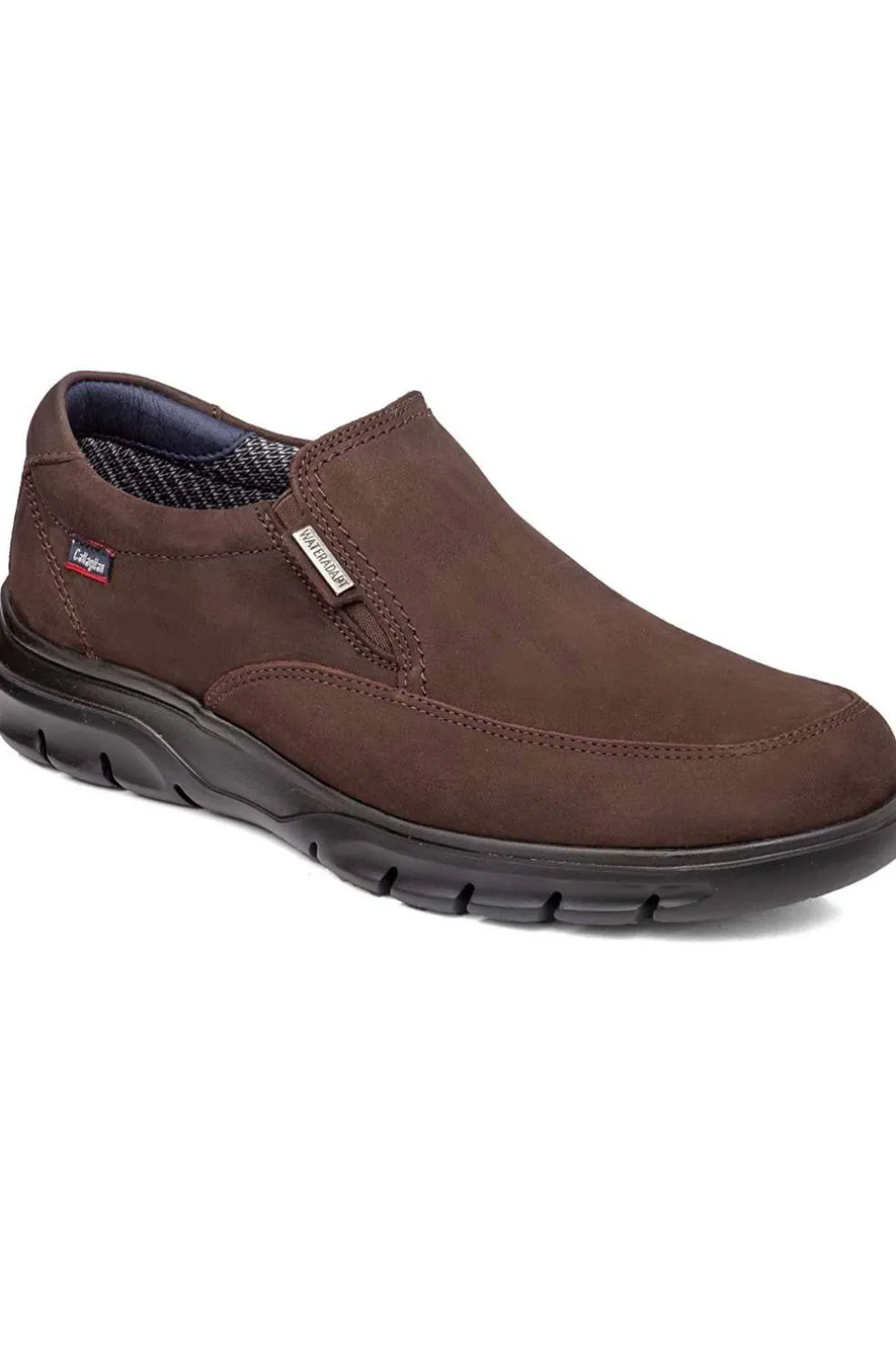 Zapato realizado en nobuck resistente al agua. Se caracteriza por su flexibilidad y resistencia.