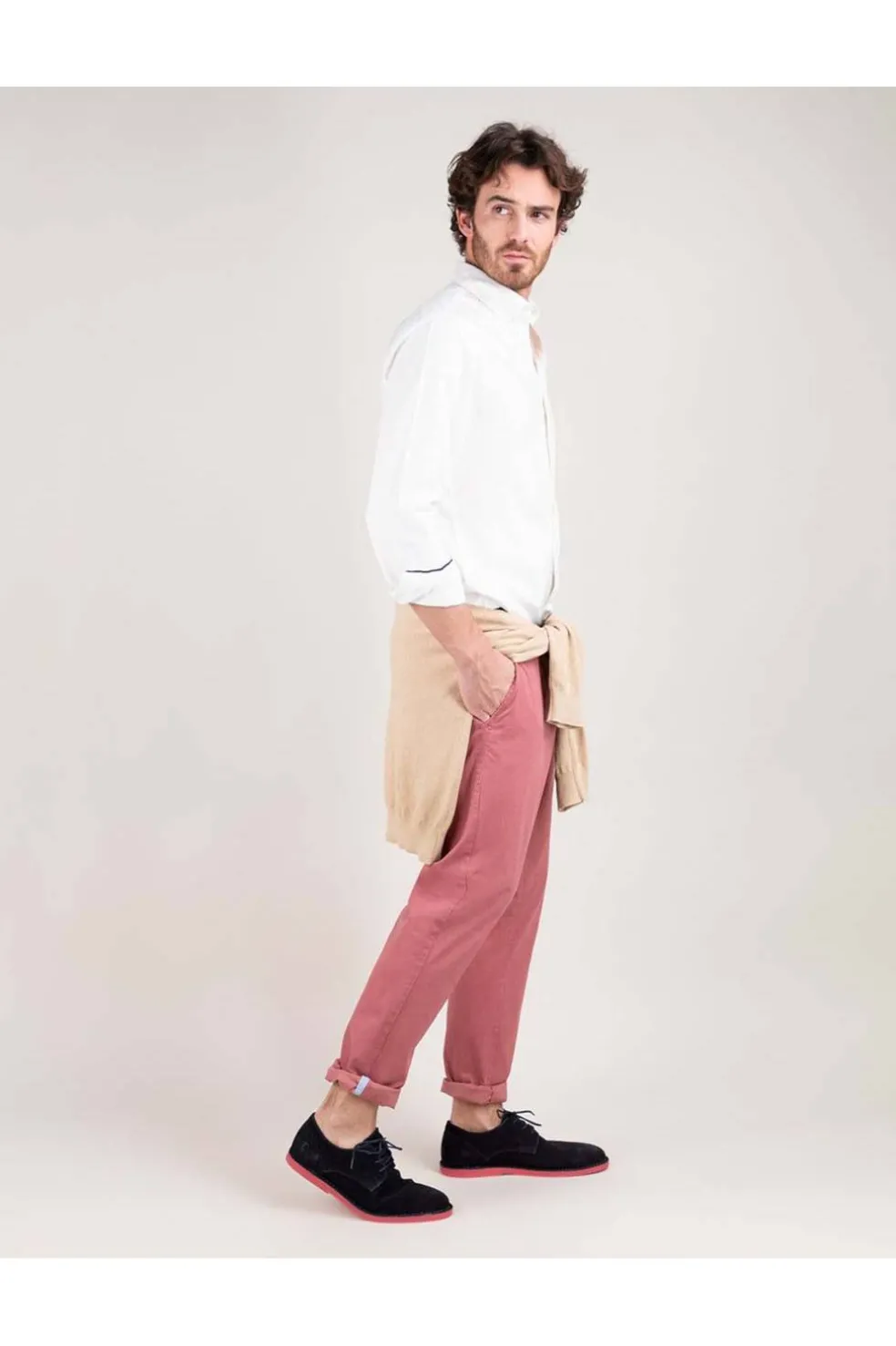 Camisa lisa de hombre confeccionada en 100% algodón, tintada en prenda envejecida para darle un acabado vintage. Corte Regular Fit, cuello buttondown y cierre con botones. Manga larga terminada en puño simple y logo en el pecho bordado.
