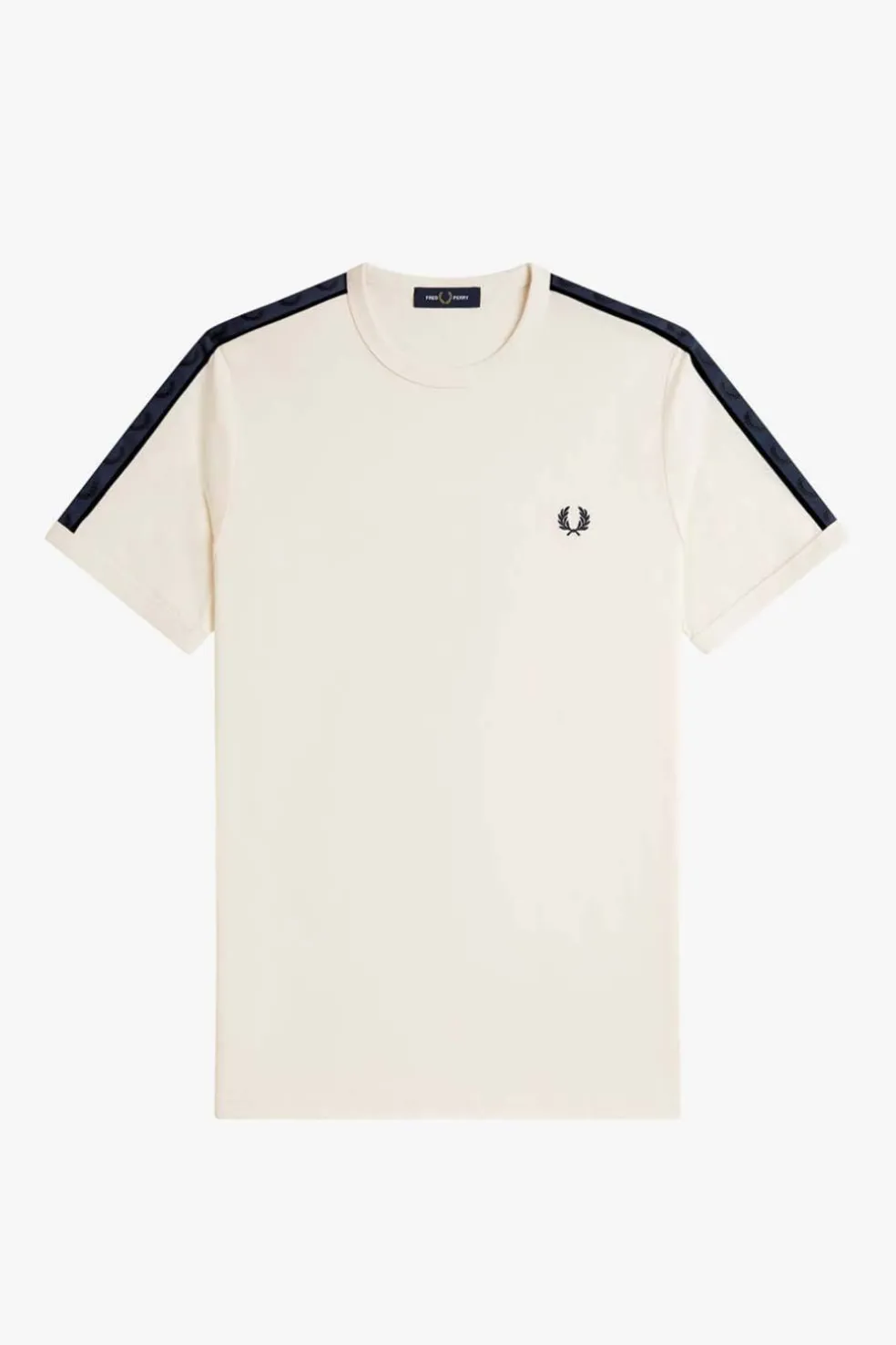 Nuestra camiseta ringer en punto de algodón, rematada con nuestra cinta deportiva original con coronas de laurel en las mangas.