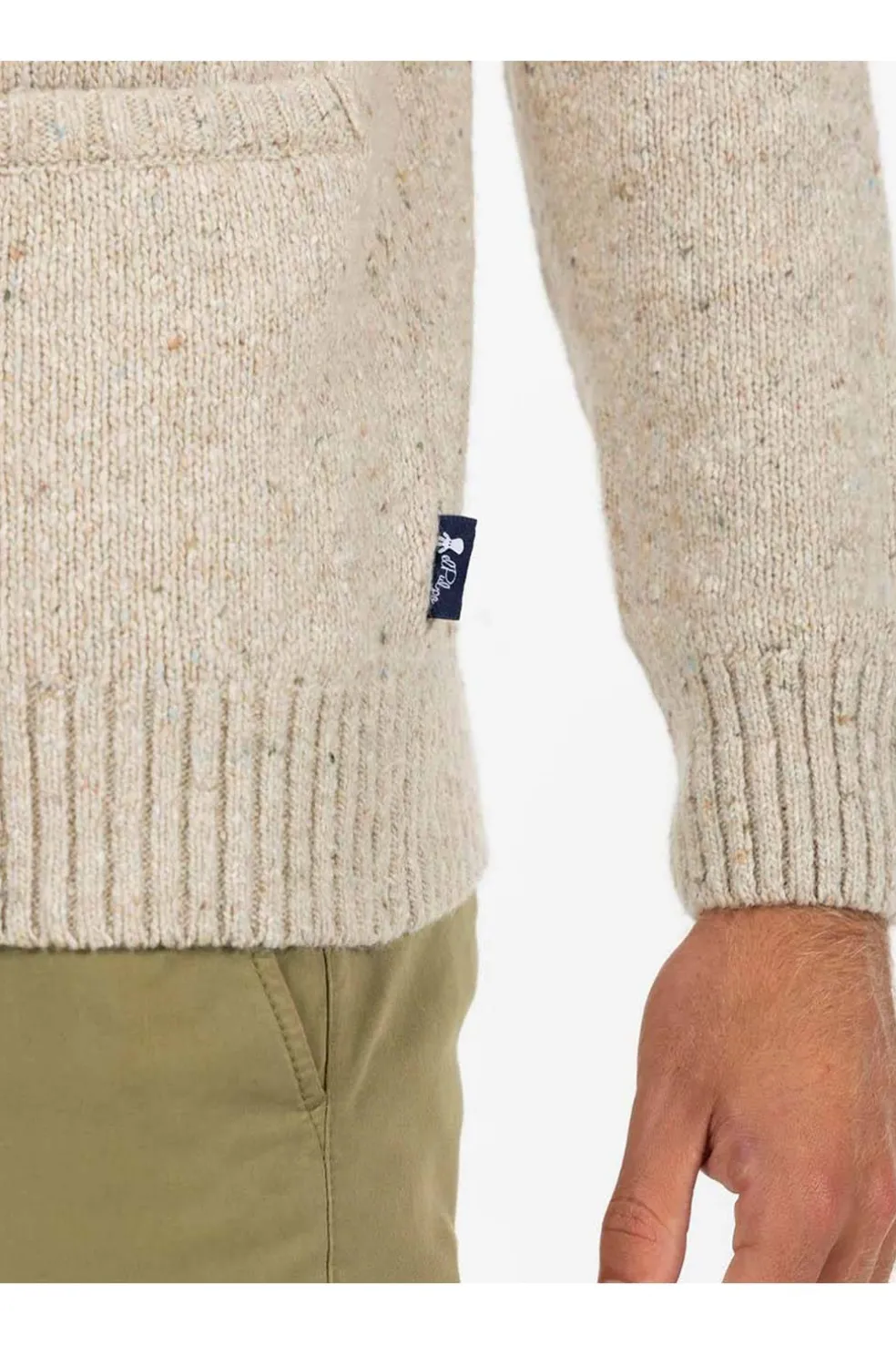 Cardigan con logo para hombre. Realizado en punto suave mezcla de lana. Color blanco roto. Cierre frontal con botones. Pulpo azul marino bordado en el pecho. Canalé elástico en puños, cuello, bajo y bolsillos. Bolsillos delanteros. Fit regular.