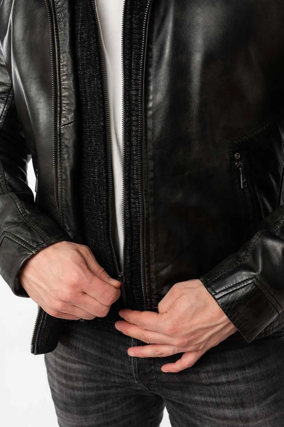 Esta cazadora de cuero de Mauritius, confeccionada en piel natural de cordero, ofrece un ajuste regular fit y un diseño moderno. Con bolsillos delanteros con cremallera, con capucha al tono desmontalbe. Perfecta para añadir estilo a cualquier look.