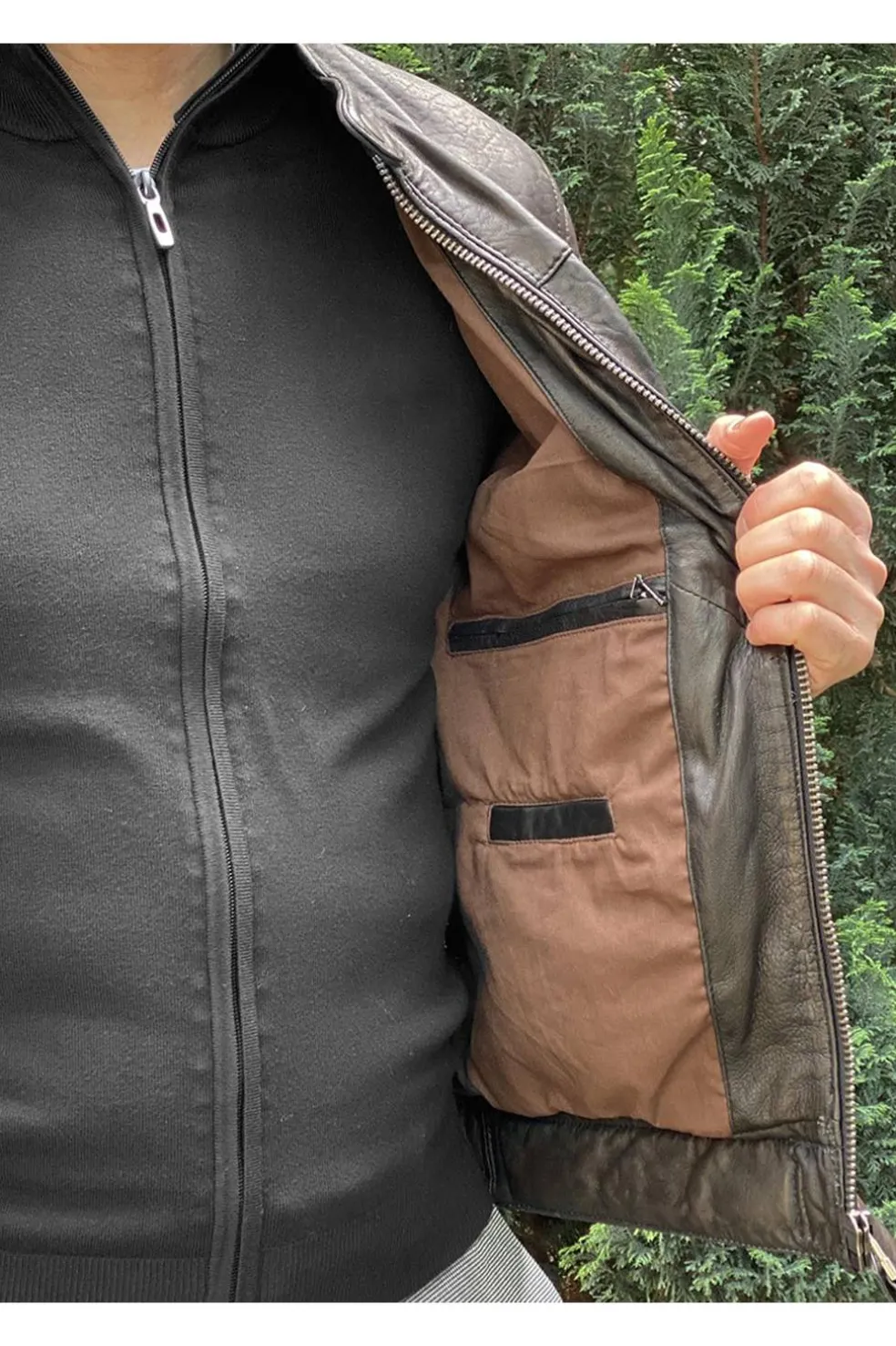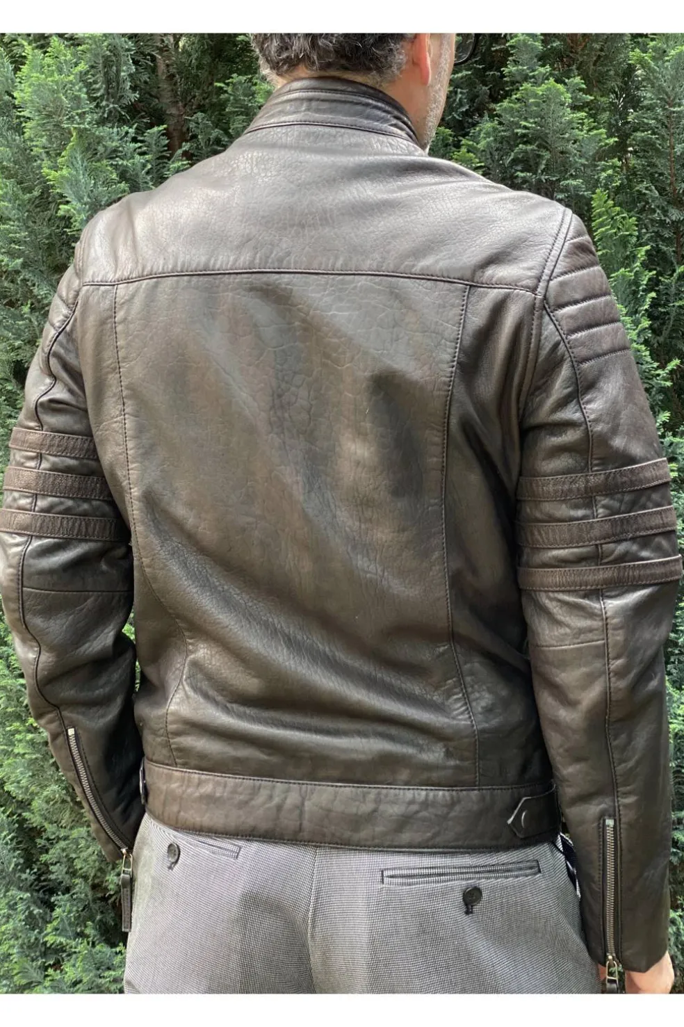Cazadora de cuero para hombre de la marca Medinapiel, en elegante color marrón. Confeccionada en piel de cordero suave y de alta calidad, ofrece una sensación agradable al tacto y un ajuste cómodo que se adapta perfectamente al cuerpo. Cuenta con bolsillos delanteros con cremallera y bolsillos interiores para mayor funcionalidad y seguridad. Los detalles en los brazos aportan un toque distintivo y moderno a su diseño. Ideal para un estilo casual sofisticado, esta cazadora combina comodidad, durabilidad y estilo en una sola prenda.