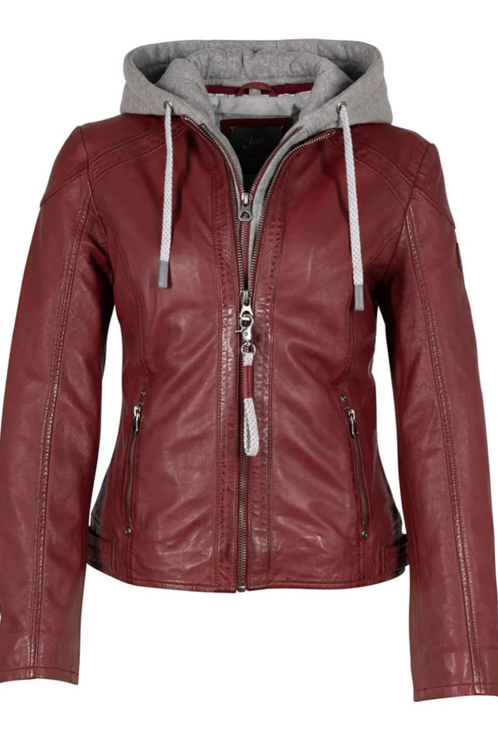 Chaqueta corta con capucha desmontable. Dos bolsillos laterales se pueden cerrar con cremalleras.. Forro interior estampado. Largo de espalda: 54 cm para la talla M.
