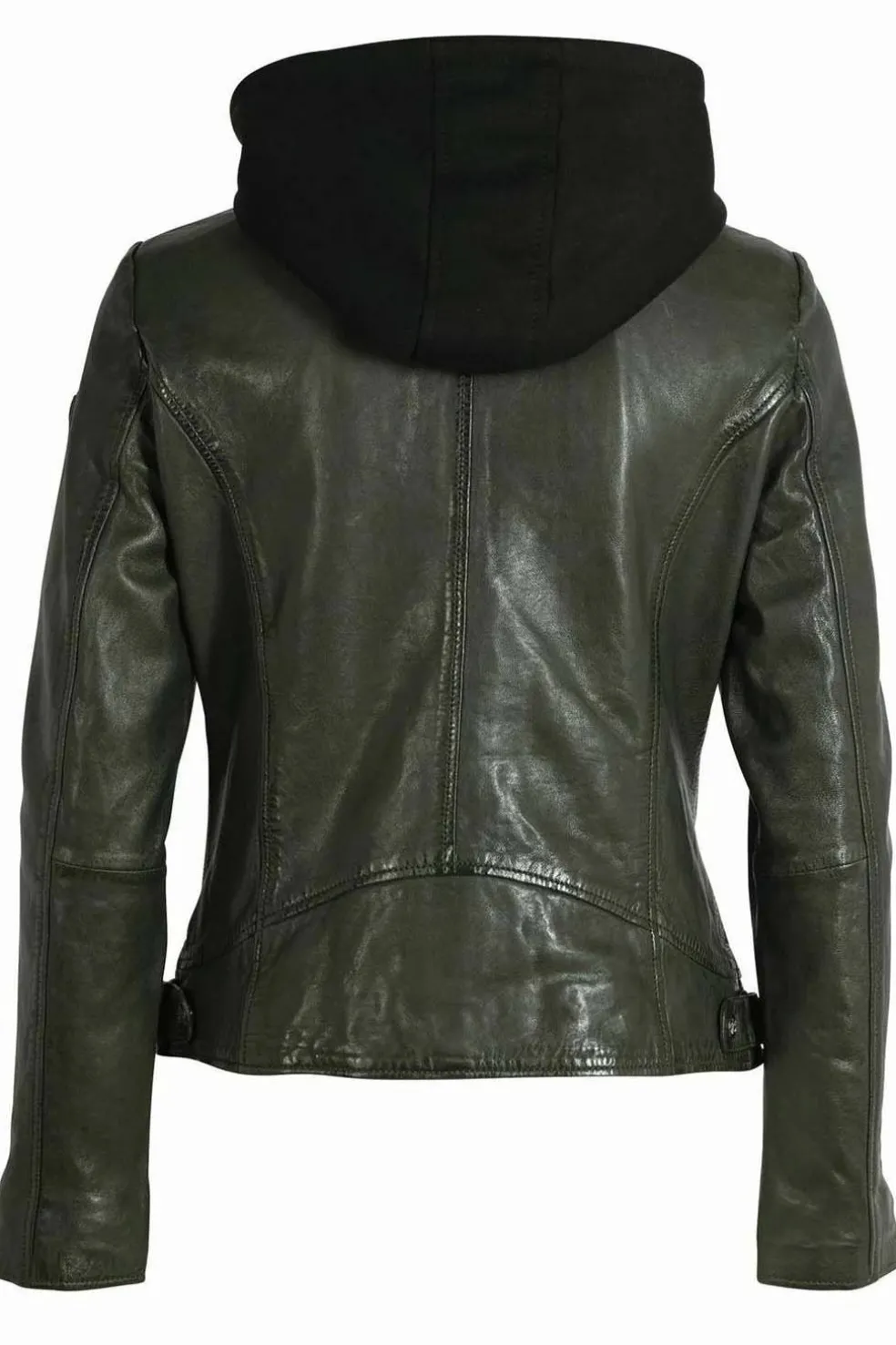 Chaqueta de piel para mujer de la marca Gipsy con capucha desmontable para un look más trendy. Su aspecto también es un poco diferente porque está muy matizado, patinado. Nos encontramos con una chaqueta de estilo motero y corte entallado en piel de cordero flexible y cómoda. Reconocemos su estilo gracias a su cuello sastre con botones automáticos (en la parte trasera tienes remaches), su cierre asimétrico y sus hebillas de ajuste en los laterales. También hay 2 bolsillos con cremallera en la cintura. En el interior el forro es de algodón para el cuerpo y de poliéster para las mangas. Largo de la prenda: 53 cm