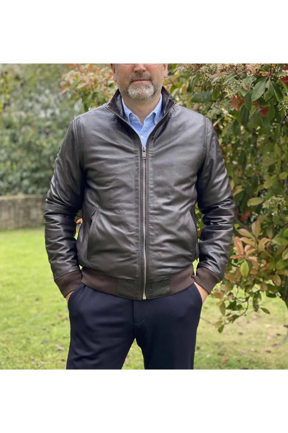 Cazadora de cuero natural, muy suave y ligera en color marrón. Es una parka atemporal con un forro acolchado desmontable.