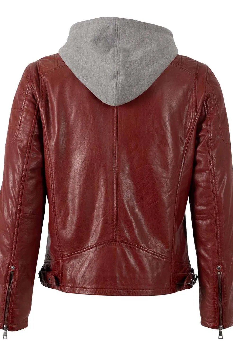Cazadora de piel natural sin cromo con un toque envejecido, vintage. La capucha es desmontable.