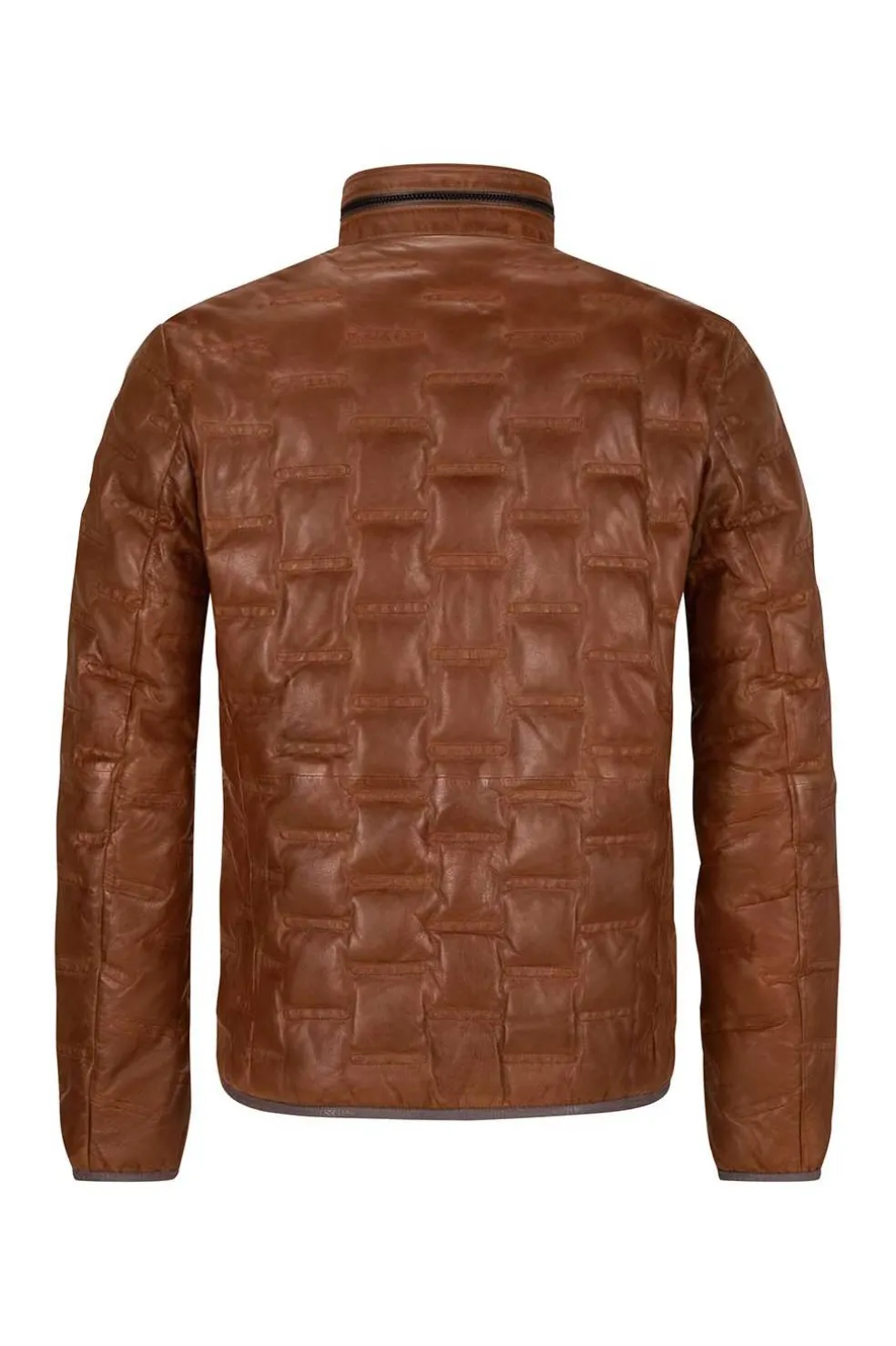 Esta chaqueta de cuero de alta calidad destaca por su aspecto acolchado especial. El modelo con acolchado suave y transpirable convence por su piel de napa igualmente suave, que garantiza comodidad y una agradable sensación de uso. El look se completa con bordes elásticos y prácticos bolsillos con cremallera.