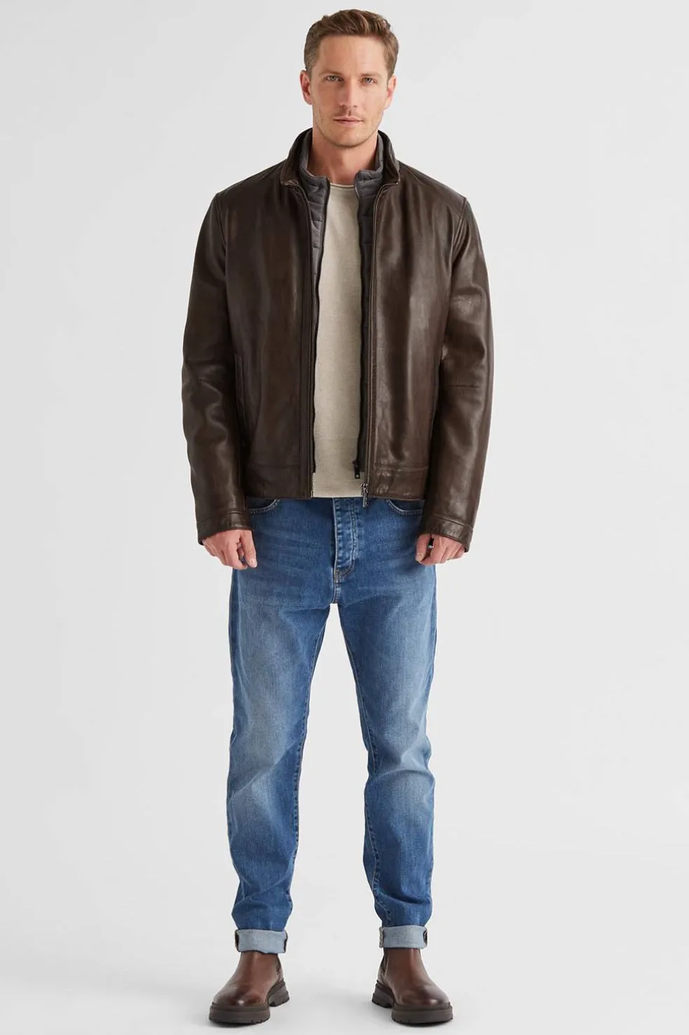 La chaqueta de cuero MSBarney combina elegancia clásica y resistencia atemporal. Confeccionada en 100% piel de cordero nappa, ofrece una textura suave y duradera, mientras que su forro interior de poliéster aporta comodidad y ligereza. En un tono marrón medio, esta prenda versátil es perfecta para la temporadaF, diseñada especialmente para el hombre moderno que busca estilo y funcionalidad en su vestimenta. Su corte outdoor le otorga un aire robusto y masculino, ideal para completar cualquier look casual o más sofisticado. Forro efecto chaqueta acolchada, suave al tacto, desmontable.