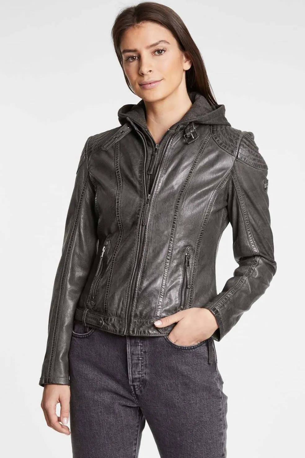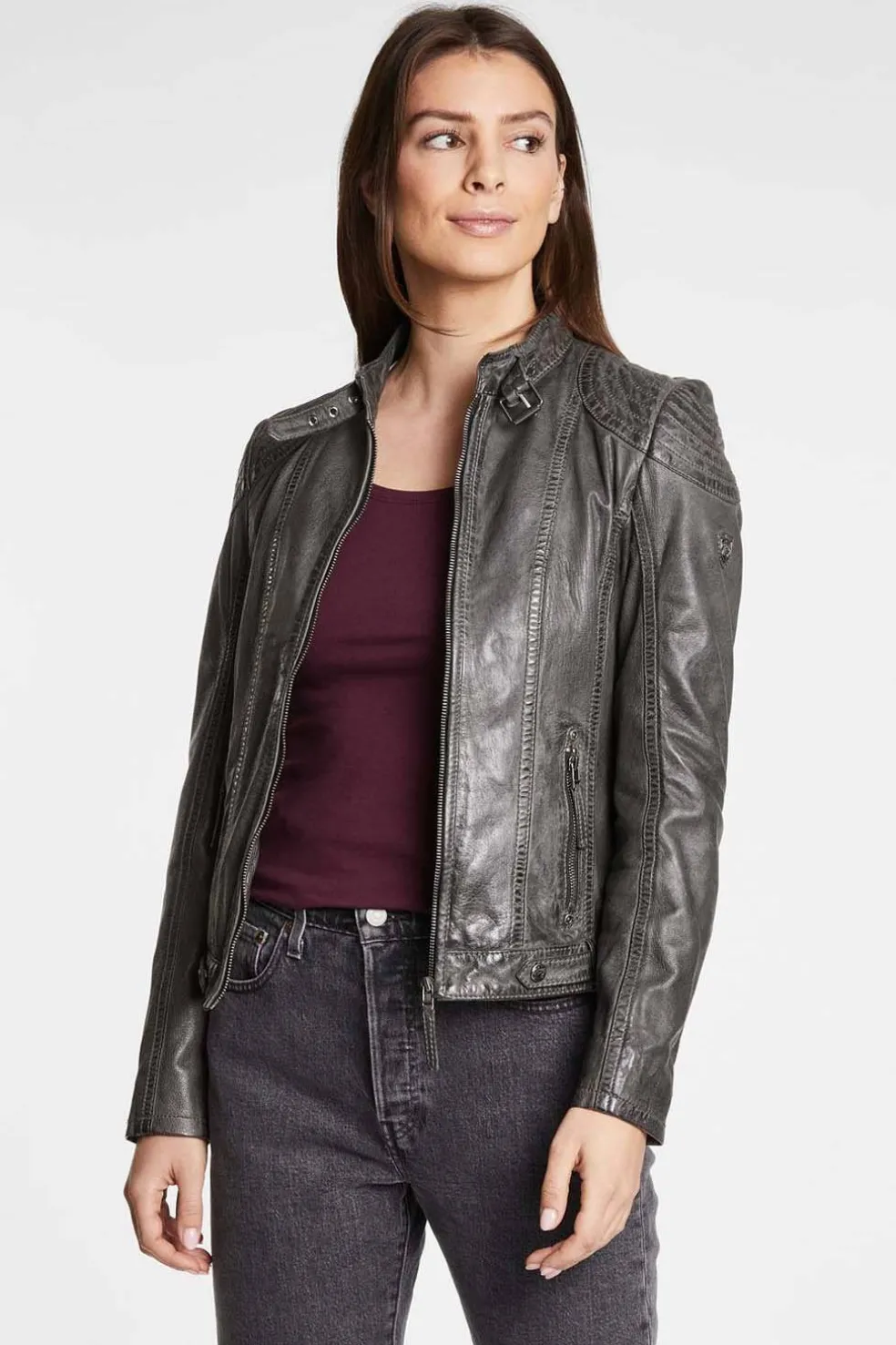 - La chaqueta de cuero se puede cerrar con cremallera.