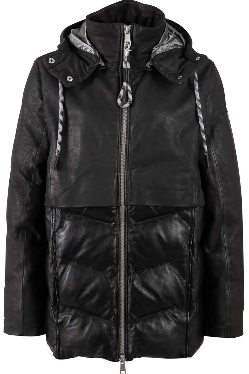 Elegante y funcional, esta cazadora está confeccionada en piel de alta calidad con acabado acolchado, aportando estilo y comodidad a partes iguales. Incorpora dos bolsillos laterales prácticos y una capucha que ofrece un extra de abrigo y protección. Ideal para looks urbanos y sofisticados en los días fríos.