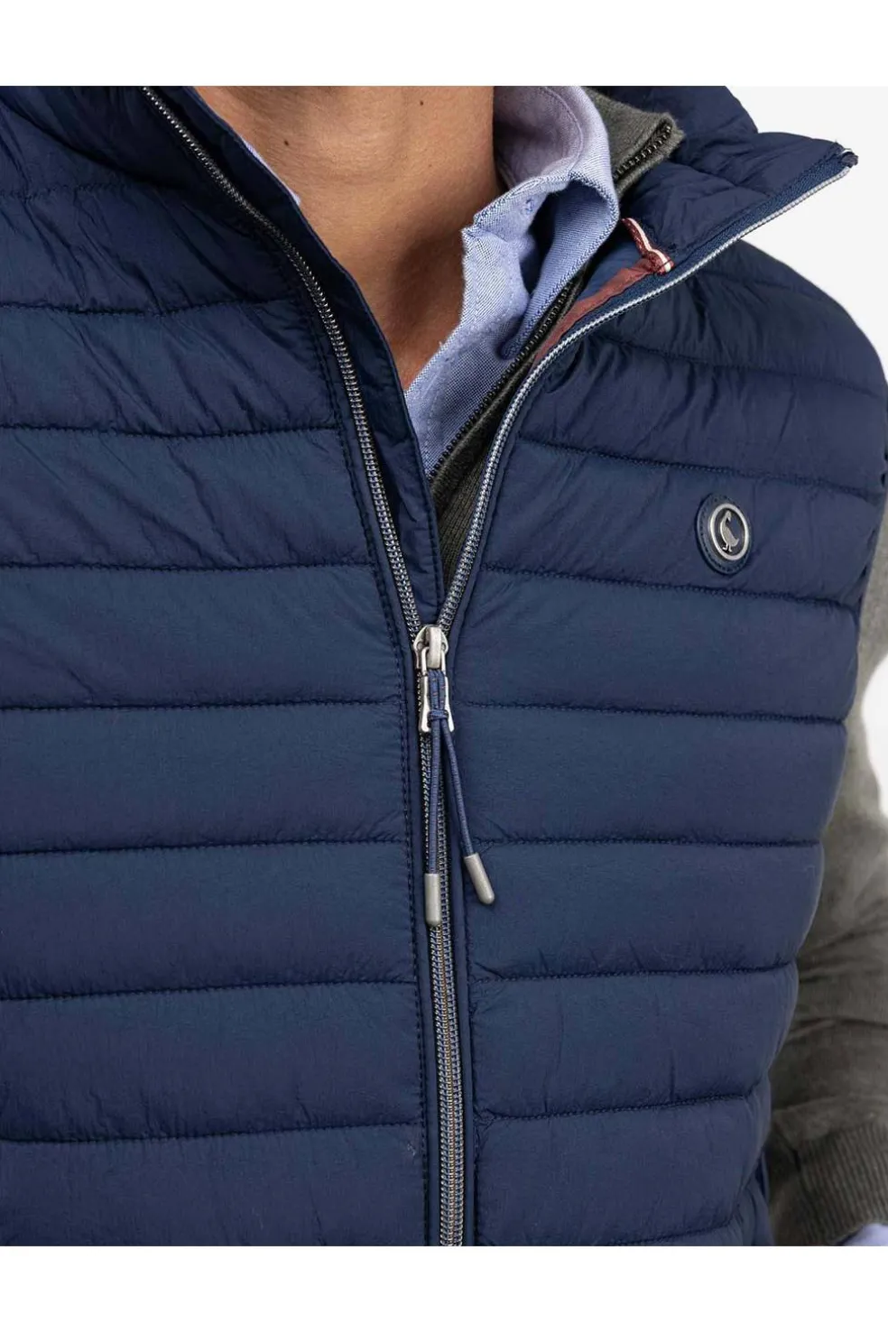 Chaleco de hombre acolchado confeccionado en nylon reciclado, repelente al agua.