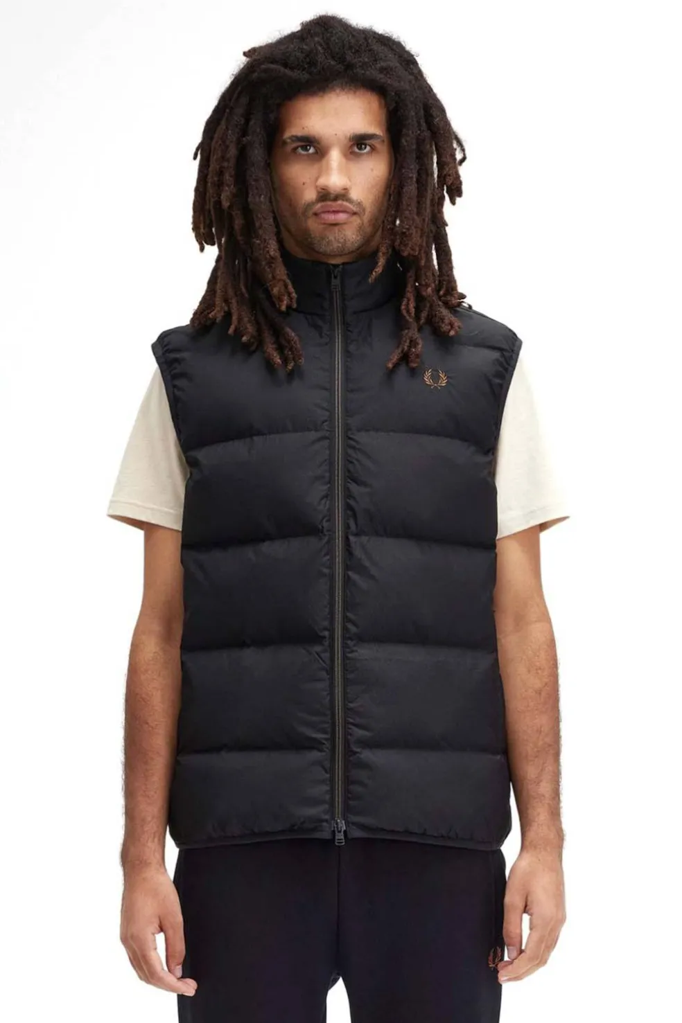 Una prenda de abrigo sin mangas con el clásico estilo mullido de las chaquetas acolchadas británicas.