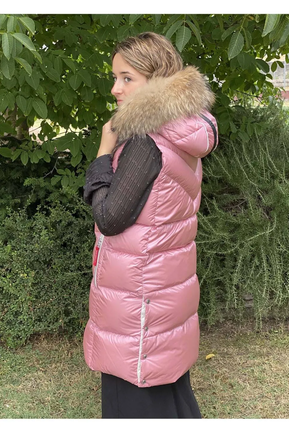 El chaleco Dichi modelo Odil en color rosa es la combinación perfecta entre funcionalidad y estilo urbano. Su diseño limpio se realza con detalles únicos como la capucha con pelo natural, que añade personalidad y un aire sofisticado a la prenda. Cuenta con dos bolsillos laterales con cierre de cremallera, ideales para llevar pequeños objetos de forma segura o mantener tus manos protegidas del frío.