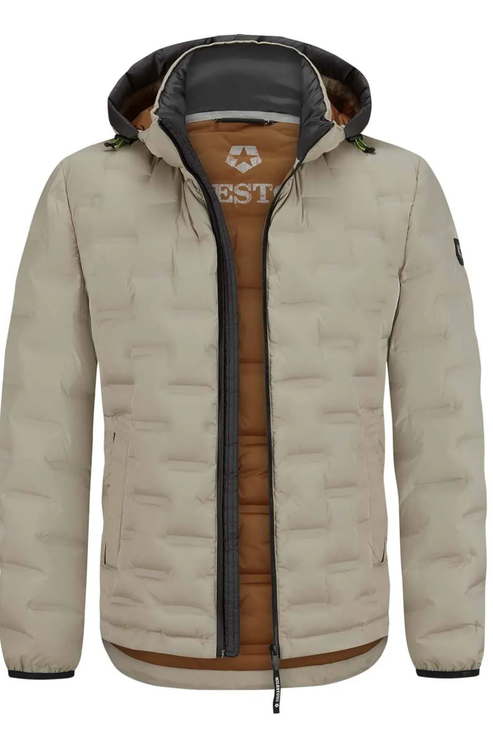Chaqueta de plumón con capucha extraíble de MILESTONE. Esta chaqueta de plumón tiene un aspecto moderno acolchado con prensa térmica. El modelo destaca por su agradable ligereza, su aspecto deportivo y su capota extraíble.
