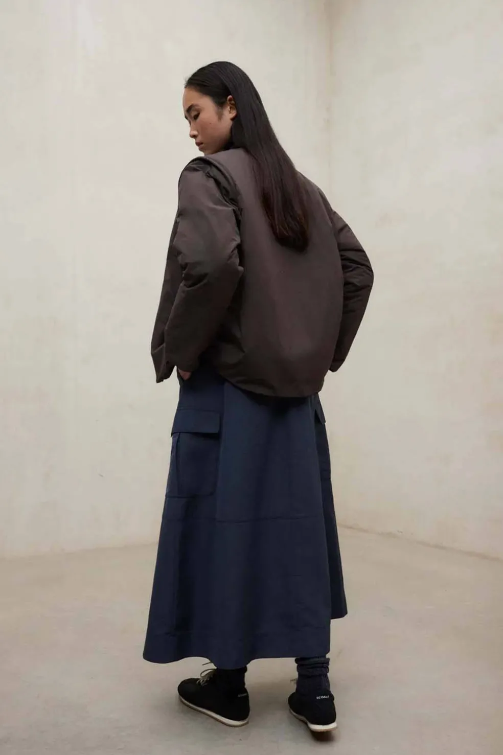 - Bolsillos insertados en las costuras laterales