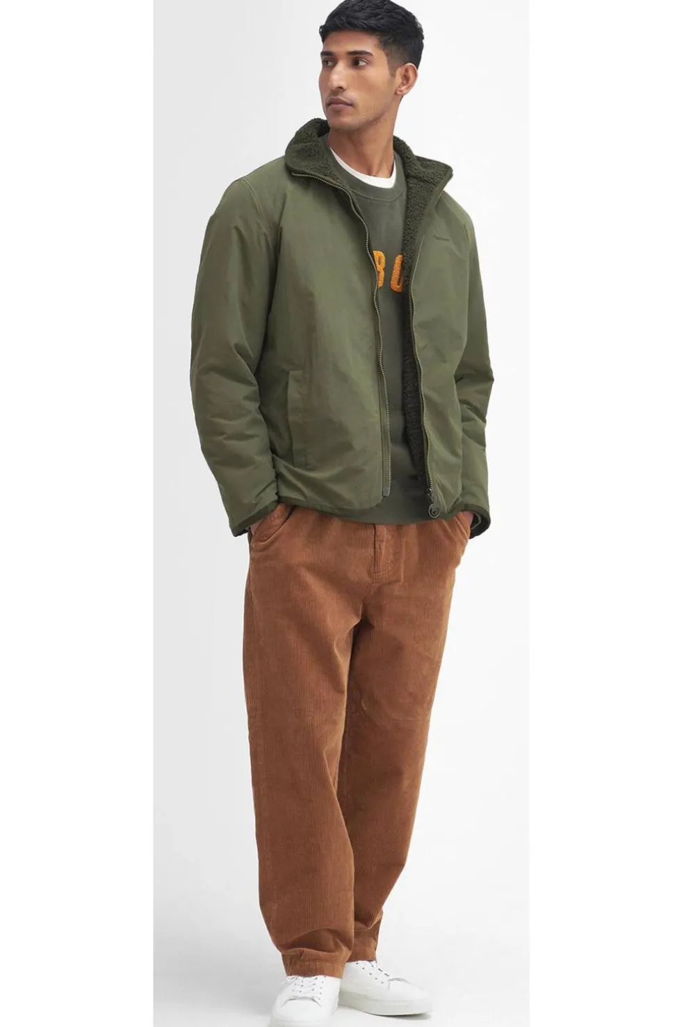 El forro polar reversible Barbour ofrece un diseño suntuosamente suave con cierre frontal de cremallera, cuello alto y cierre de cremallera. Con bolsillos laterales para guardar cosas de forma segura, esta prenda presenta un acabado impecable con ribetes de licra en el bajo y los puños, y un parche con el logotipo de Barbour en el pecho como distintivo.