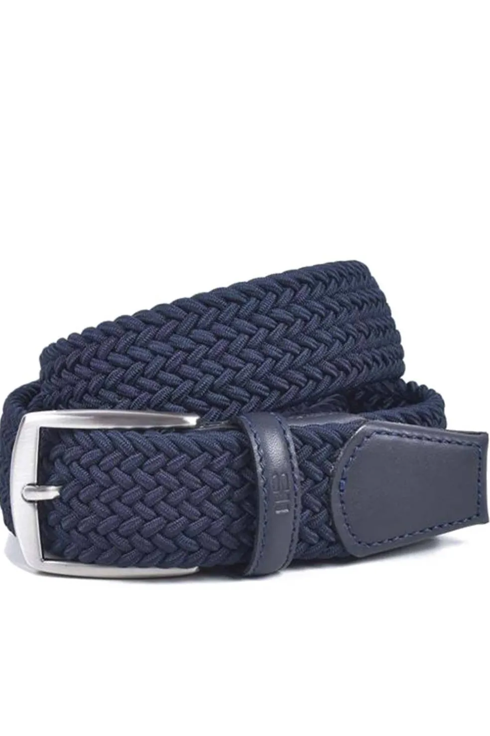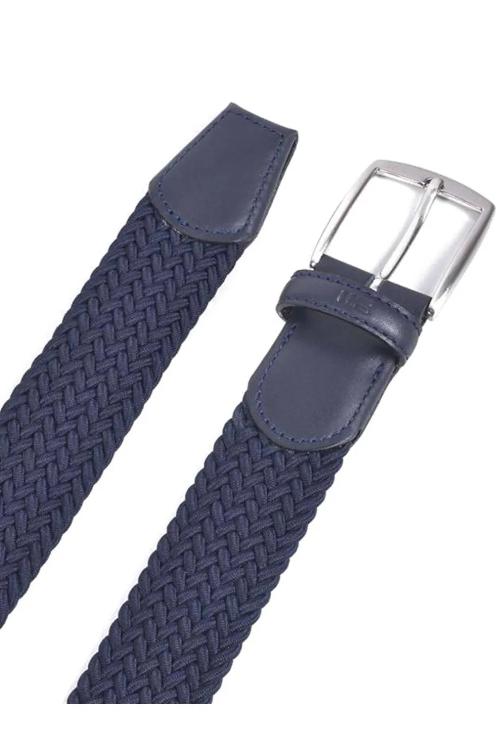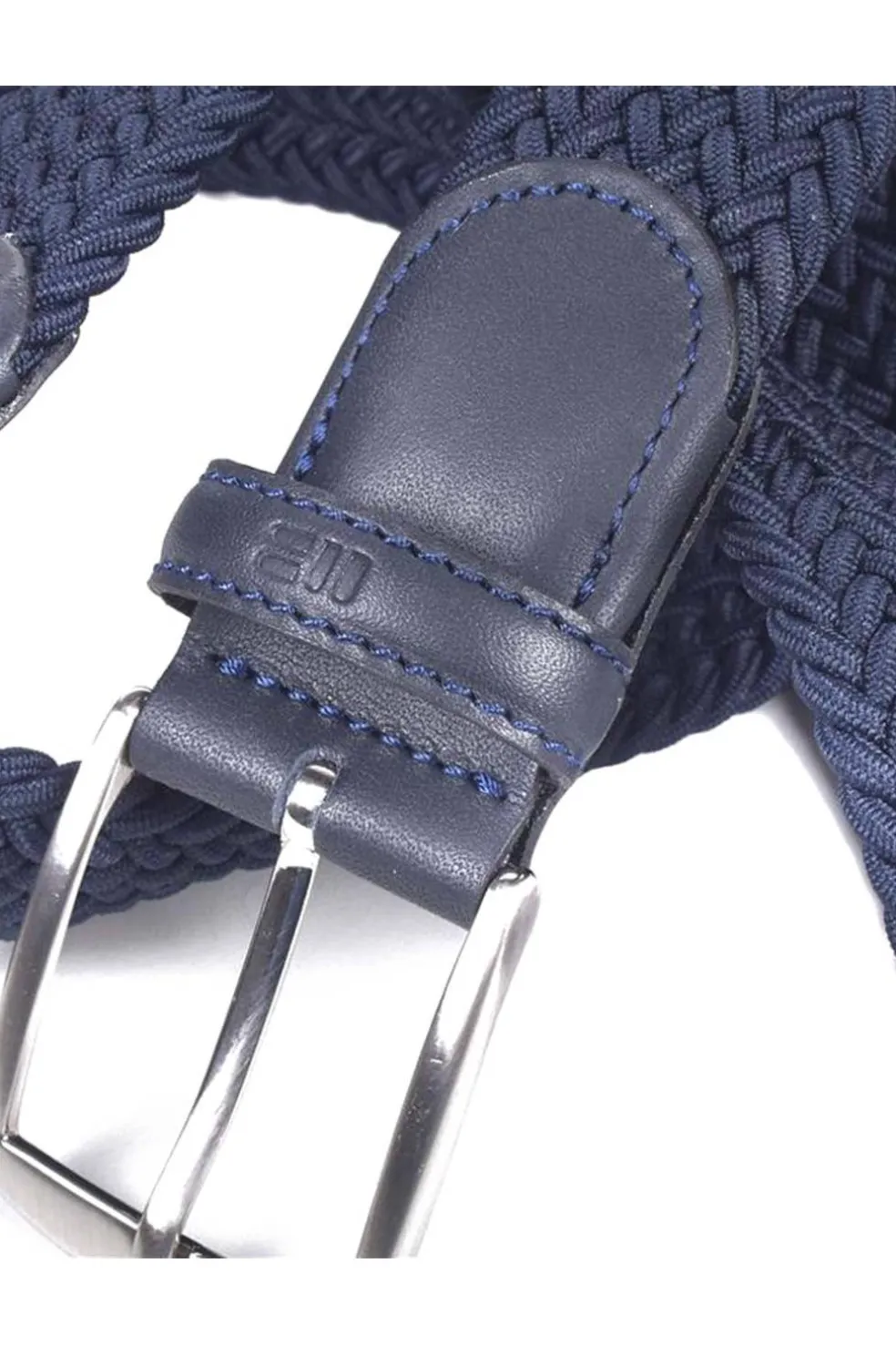 Cinturón textil trenzado, con detalles en auténtica piel de vacuno. Su elasticidad facilita un cómodo ajuste en la cintura. Un modelo muy versátil, que se abrocha en la misma trenza. Pasador de piel identificado a fuego con la marca. Hebilla metálica en acabado níquel satinado. Fabricación Nacional.