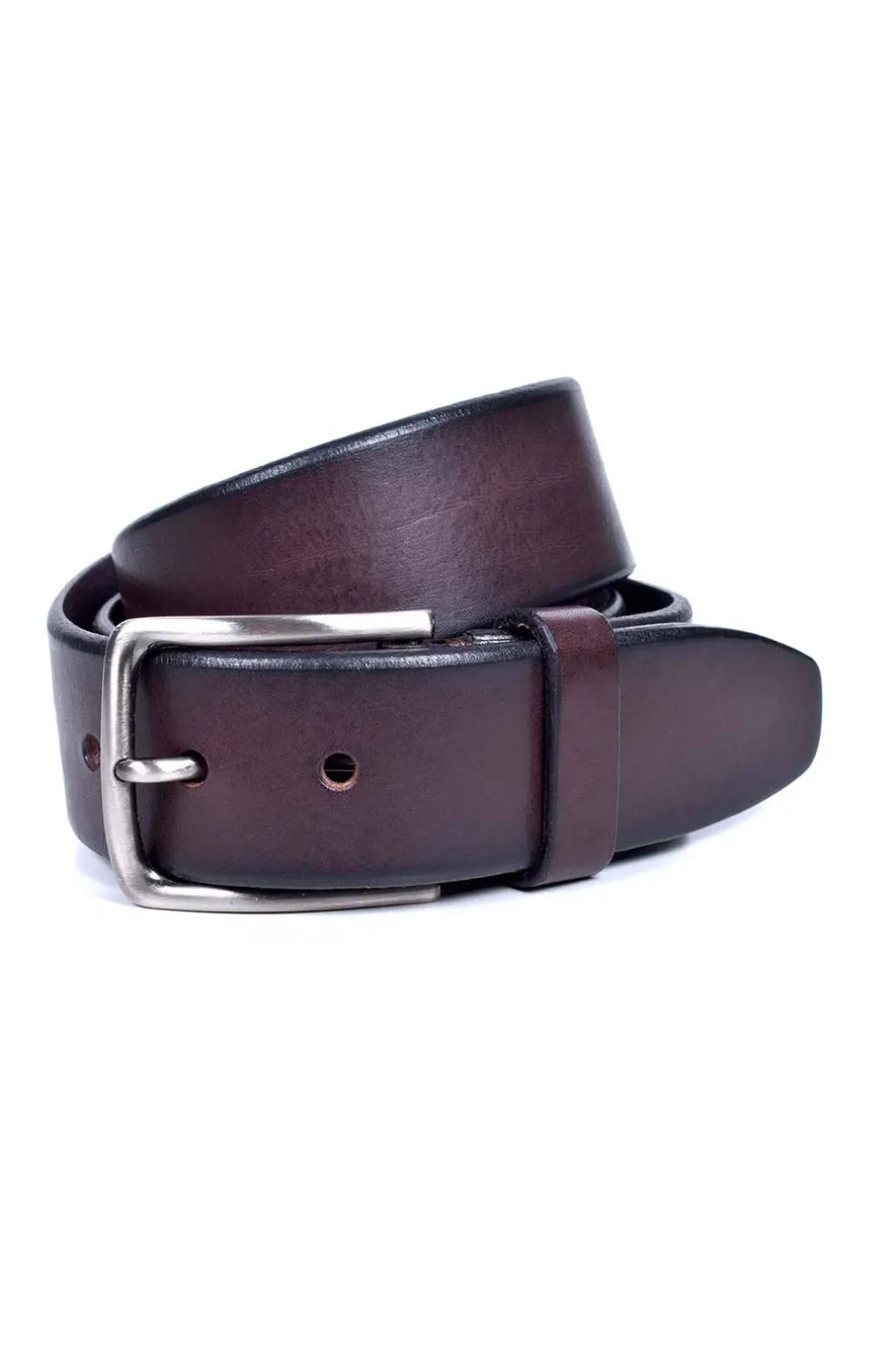 Cinturón de piel vacuno fabricado en España. Aplique metálico que sirve de adorno y para facilitar el corte del cinturón para adecuar la talla. Un cinturón limpio de pespuntes y un básico que combina con muchos looks .