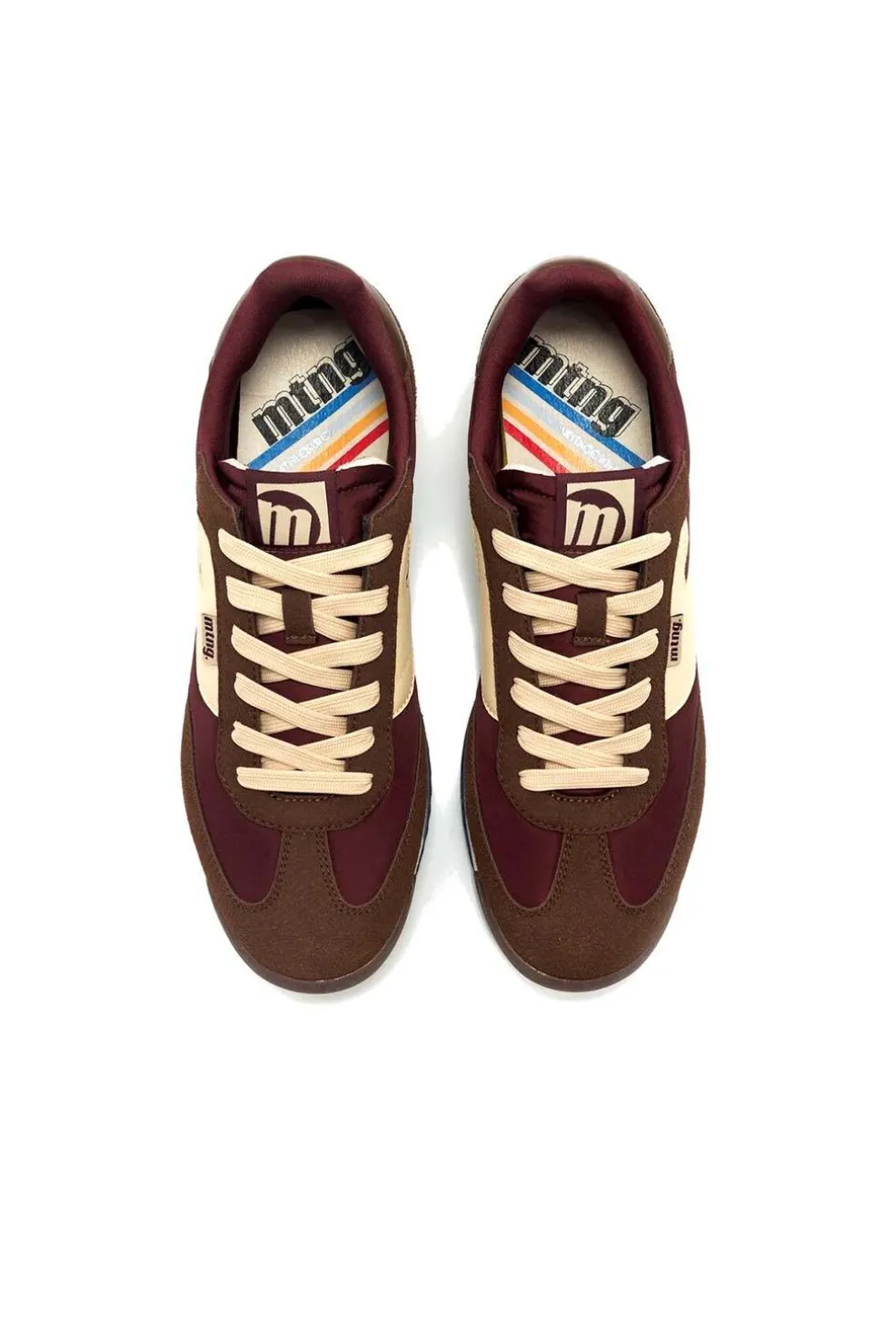 Zapatillas casual de color marrón y burdeos para hombre, modelo Olympic de Mustang con diseño de inspiración retro.