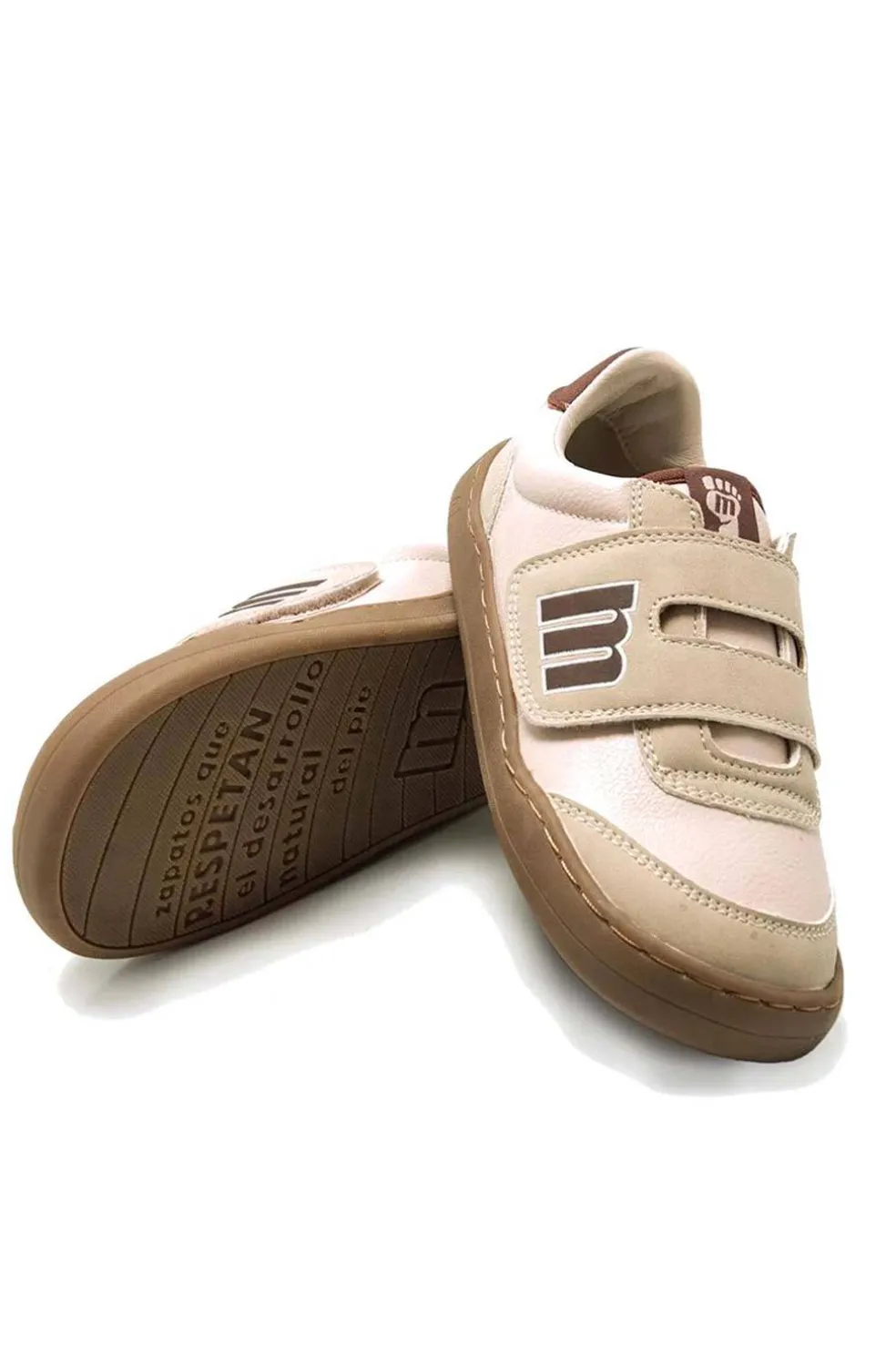 Zapatilla Free Mustang para niña, diseñada en color rosa pastel, incluye cierre de tira adhesiva. Logo de la marca, lengüeta y trasera de marrón oscuro. Diseñada y desarrollada especialmente en colaboración con el Dr. Juanjo López, traumatólogo deportivo e infantil, para respetar el desarrollo natural del pie del niño y la niña. Gracias a su puntera ancha permite el libre movimiento de los dedos dentro del zapato.