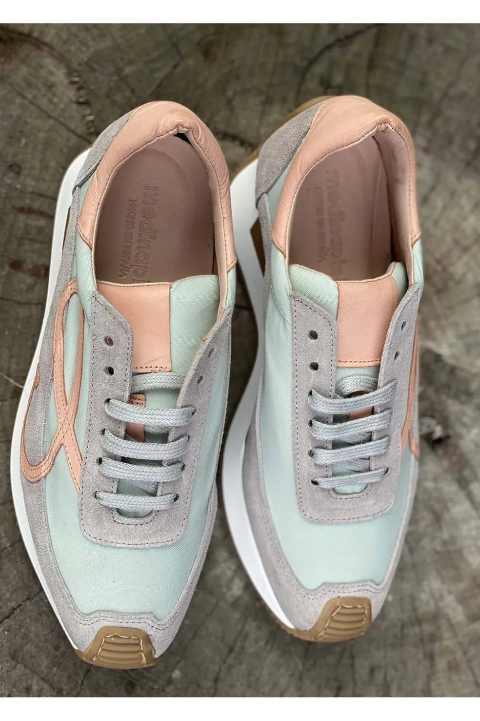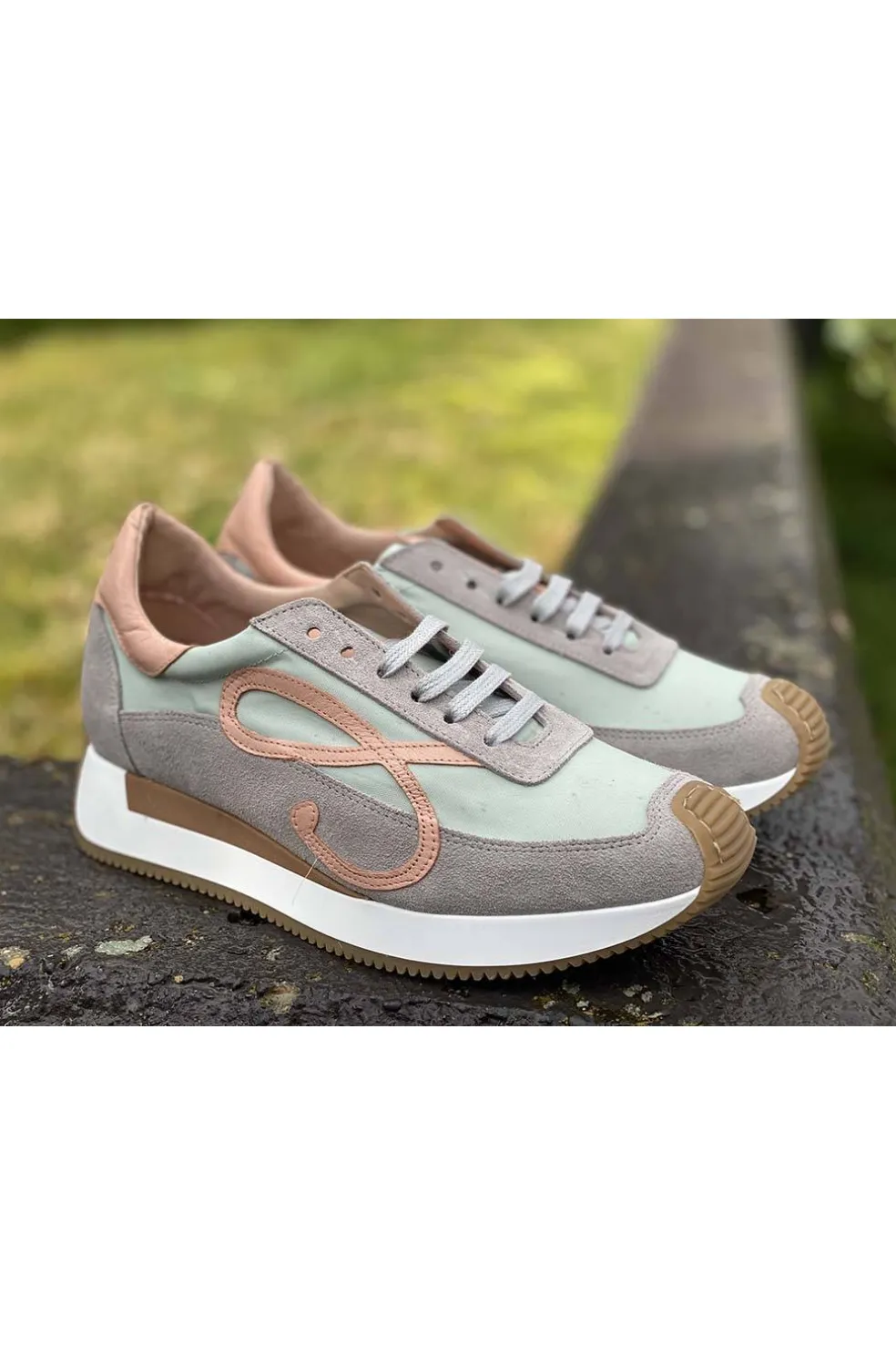 Sneaker de moda hecha en España con diferentes pieles y acabados napa y ante que dan como resultado una espectacular deportiva de lujo.