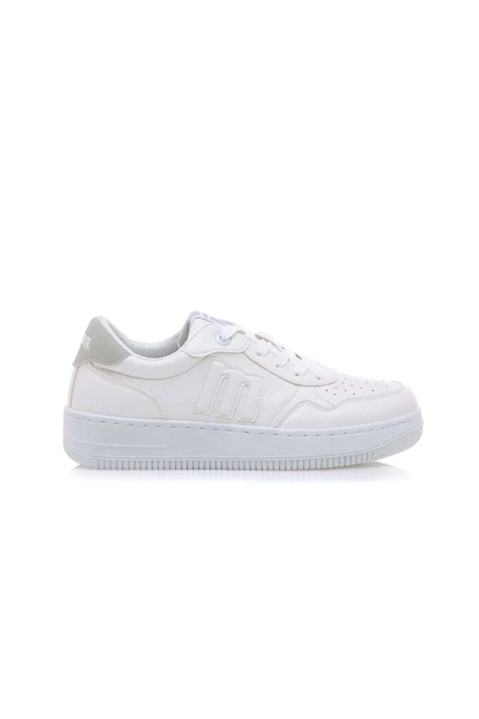 Zapatillas blancas Gravity de mujer, marca Mustang. Destacan por su diseño monocromático y su detalle gris en el talón. Cuenta con un cierre de cordones también blanco y la M del logo en sus laterales. Si buscas un básico para el día a día, Gravity de Mustang es para ti.
