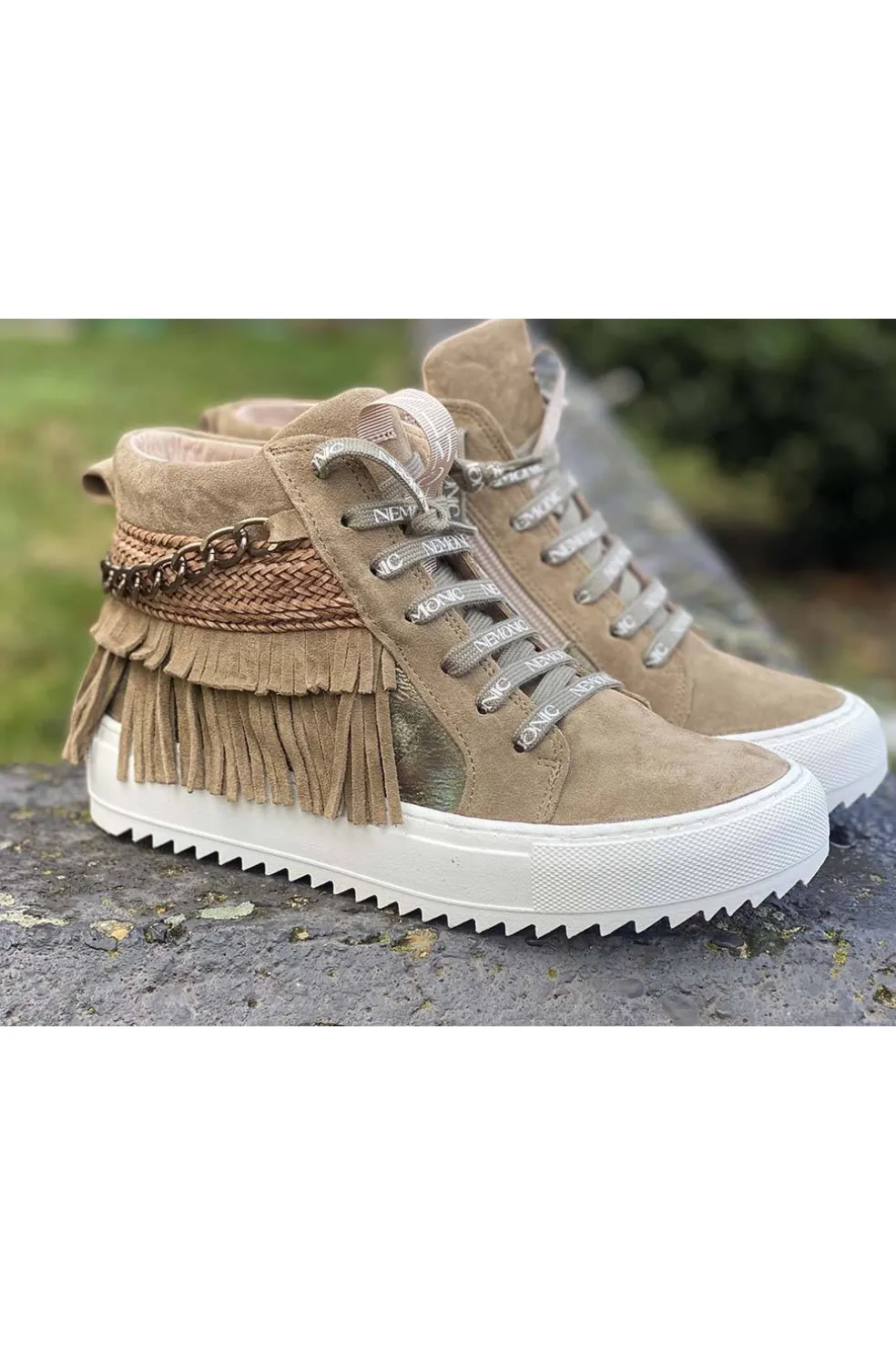 Cordones con el nombre de la marca. Cierre con cremallera. Cinta trenzada alrededor.