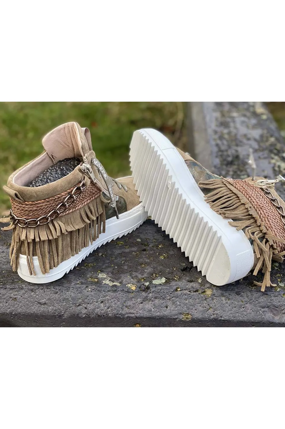 Espectacular botín deportivo de mujer en color arena/verdoso, detalle camuflaje.