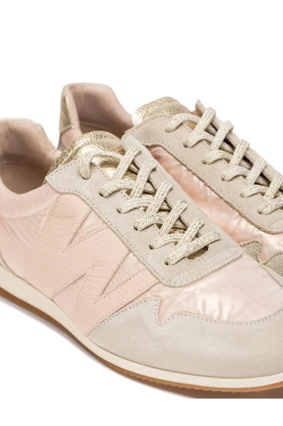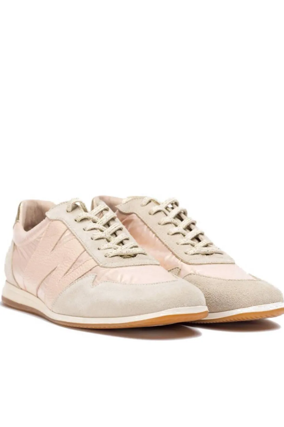 Deportivas CECILIA, confeccionadas en una combinación de pieles y textil en color rosa palo. Este modelo en tendencia destaca por su diseño slim y elegante, ideal para complementar cualquier look moderno. Su ajuste mediante cordones elásticos garantiza practicidad y comodidad.