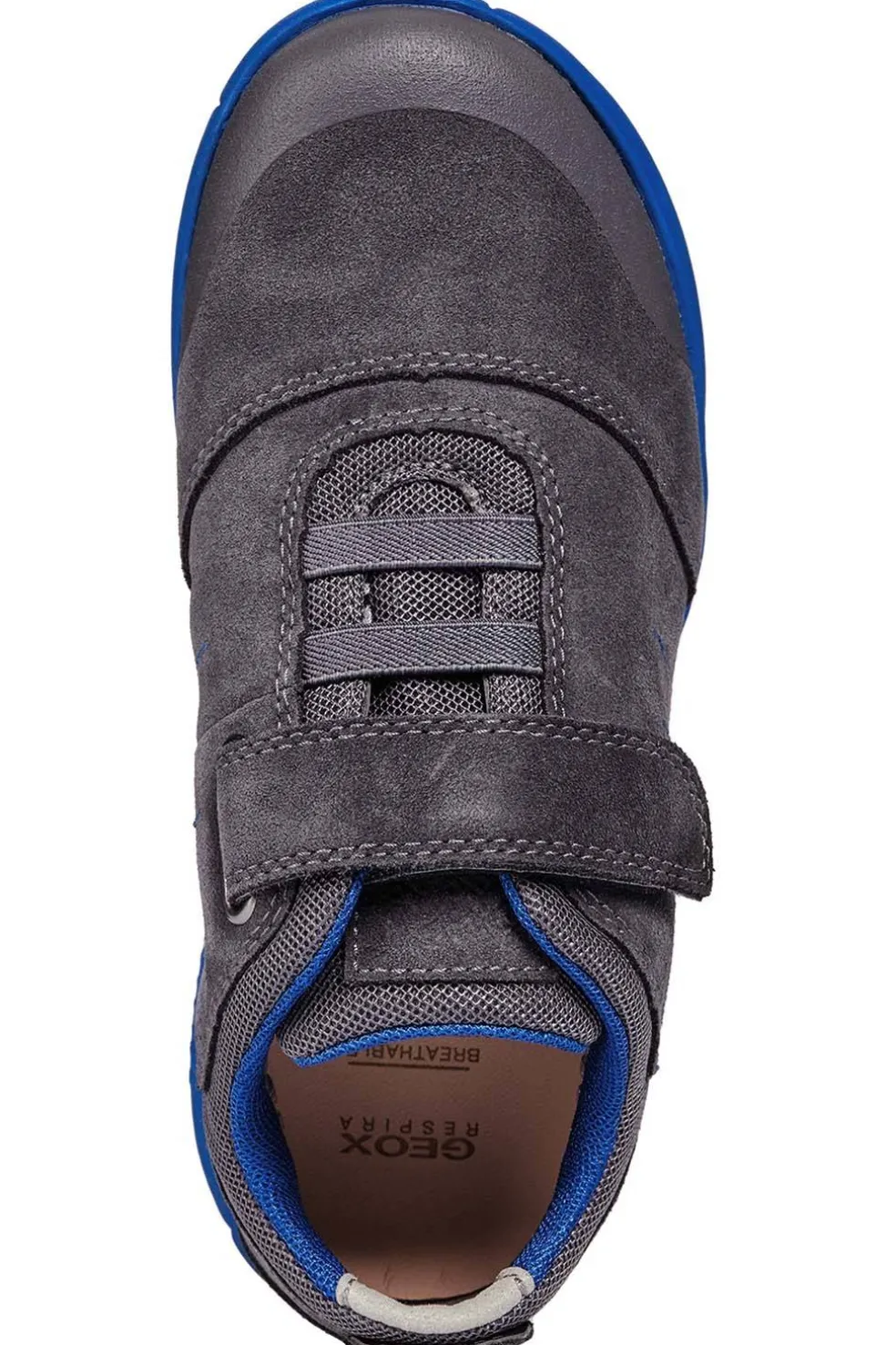 Zapatilla niño muy ligera, flexible y durable, con óptimos niveles de adherencia y amortiguación, ultra transpirante gracias al Net Breathing System. La empella de gamuza y malla azul marino, con suela y detalles en contraste color naranja, está realizada en materiales repelentes al agua y tiene un revestimiento protector en la punta que asegura un alto grado de resistencia a la abrasión.