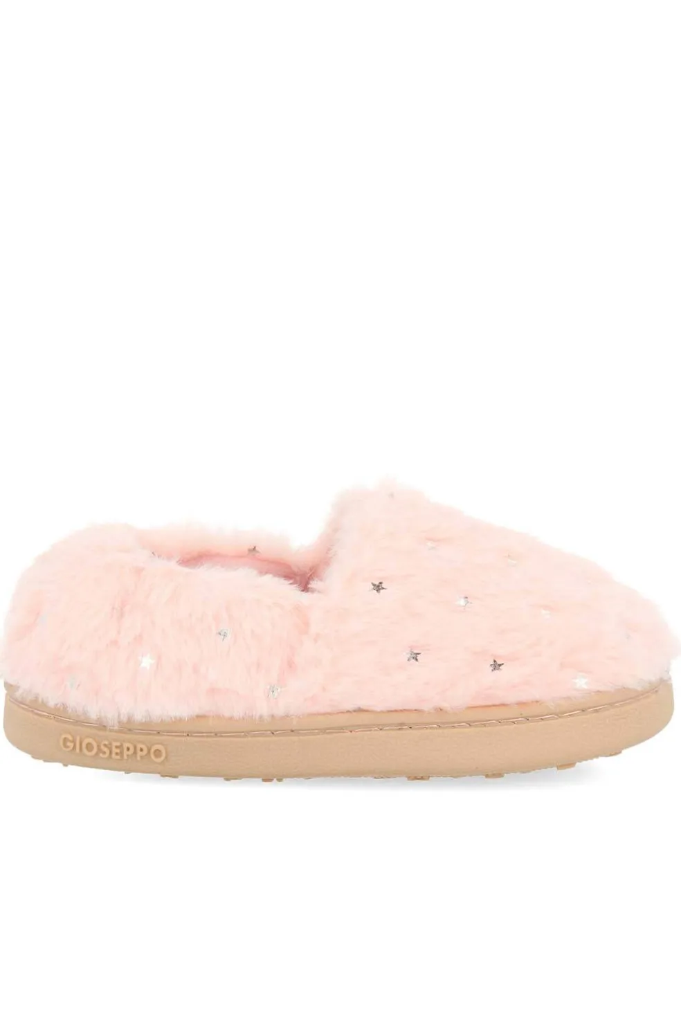 Zapatillas de estar por casa blancas cerradas súper calentitas con material suave y brillos. Interior suave y acolchado.