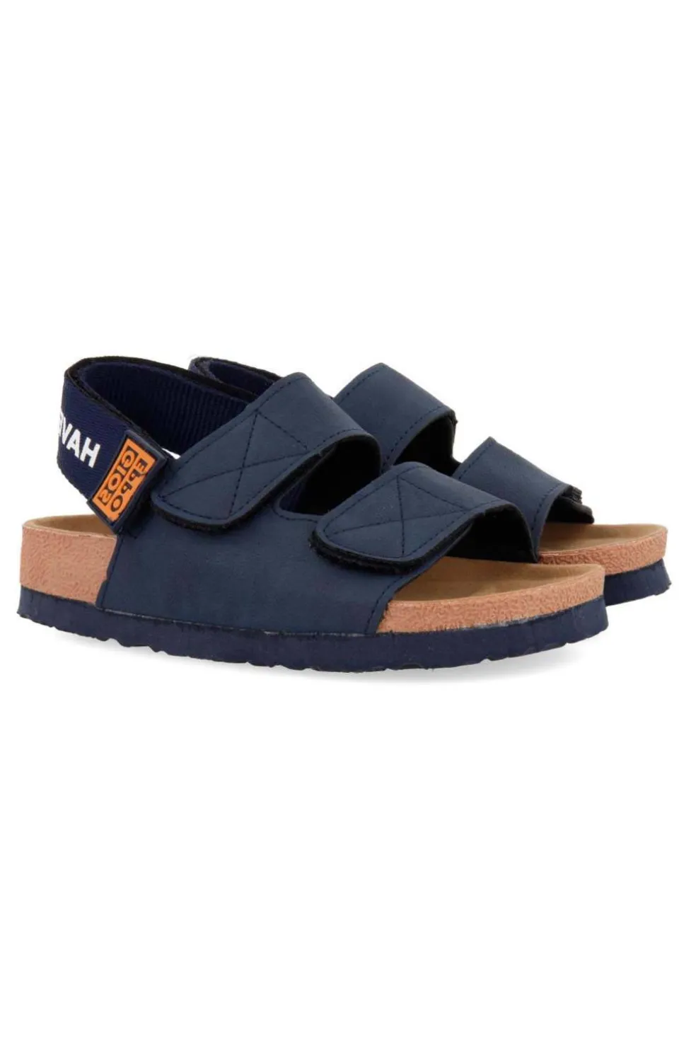 Un básico con detalles que le encantarán. Chanclas bio color marino y suela resistente al agua. Cierre con velcro ajustable para un mejor calce.