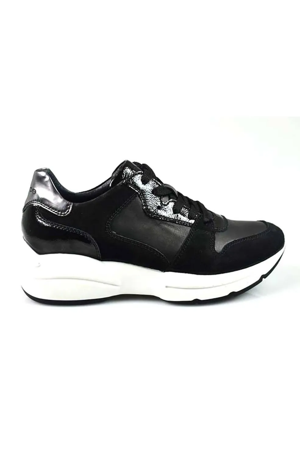 deportivo mujer de piel natural con cordones. Combina piel anteada y tejido.